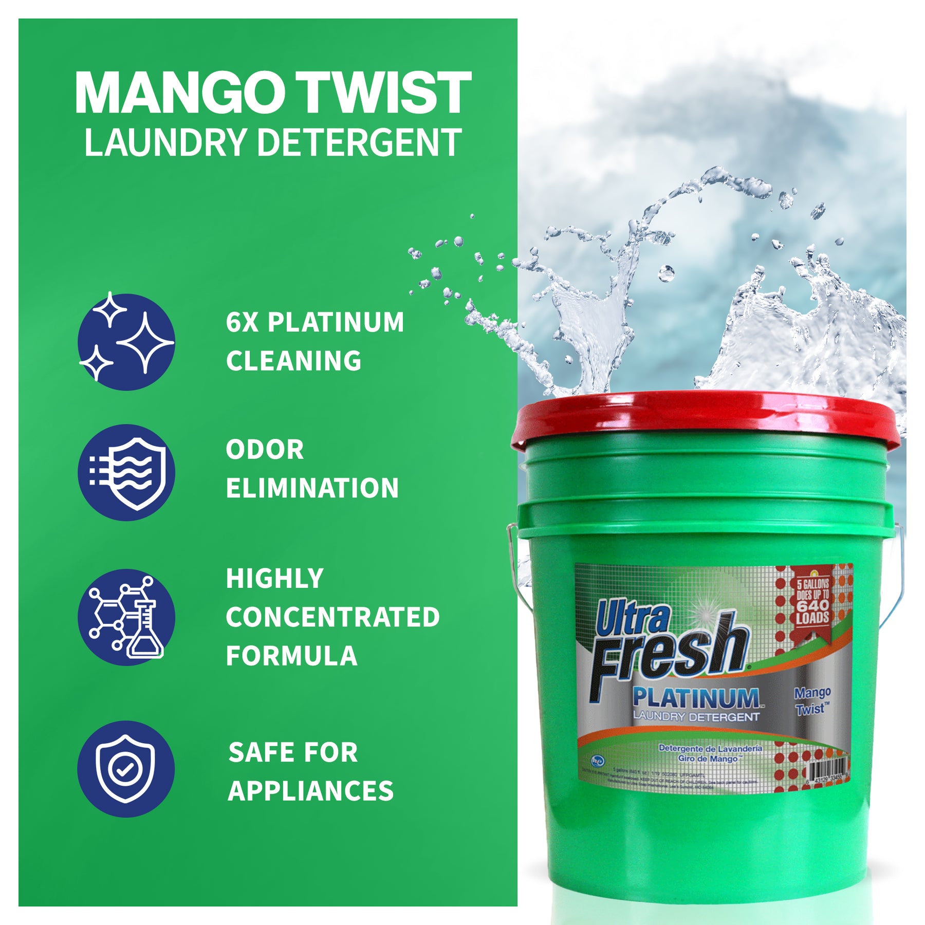 Ultra Fresh 3X Platinum Laundry Detergent, Up to 640 Loads, Mango Twist, 5 Gal