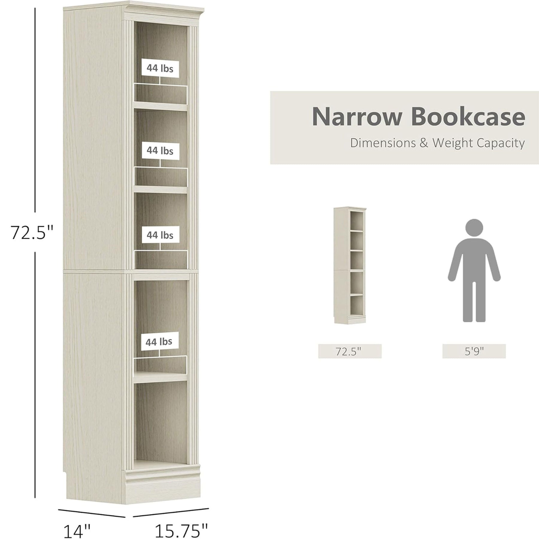 VAUXHILL & CO Halston Narrow Bookcase Adjustable Storage Shelving Unit(Open Box)