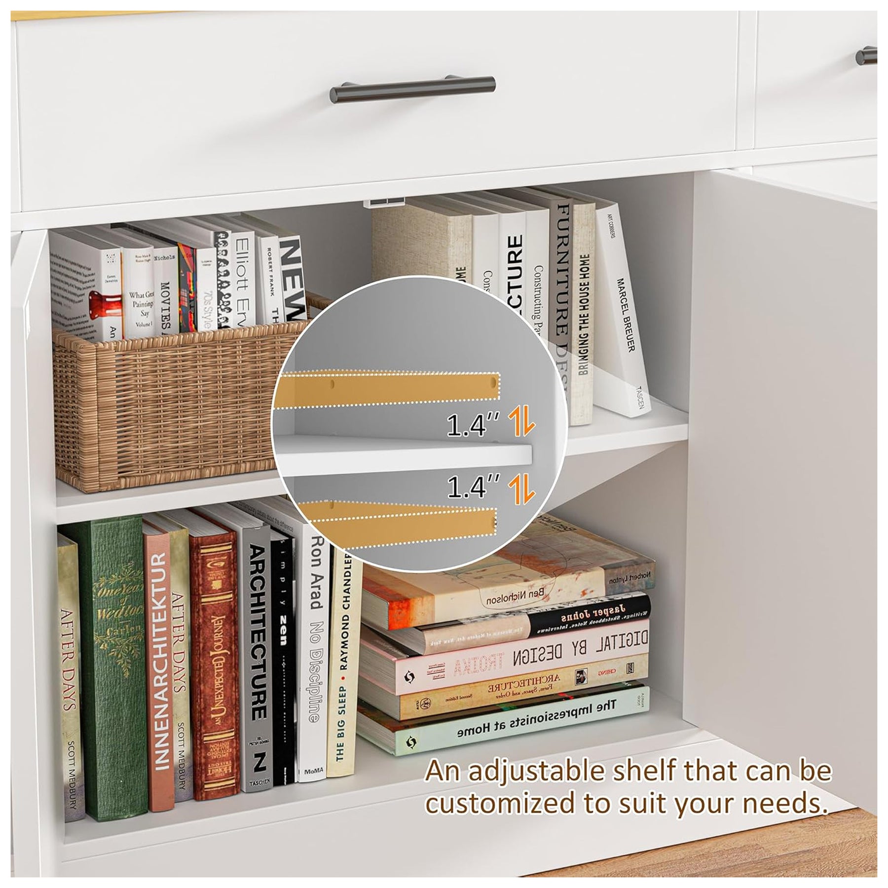 • 53-inch buffet cabinet with 3 drawers, 4 doors, and adjustable shelves for versatile storage