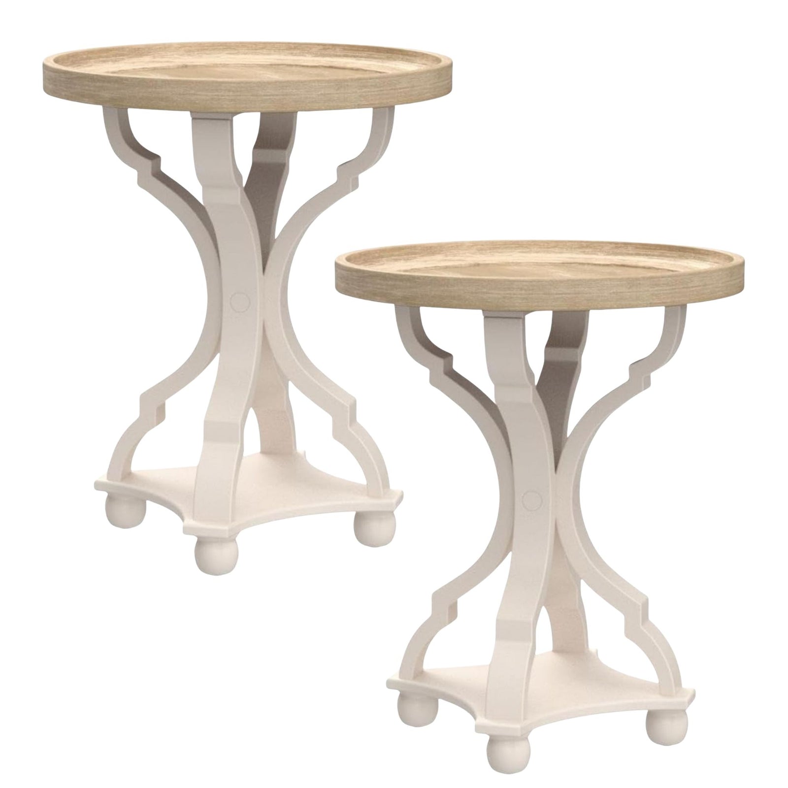 COZAYH Rustic Table Round Accent Wood Tray Top Curved Base Furniture, Set of 2
