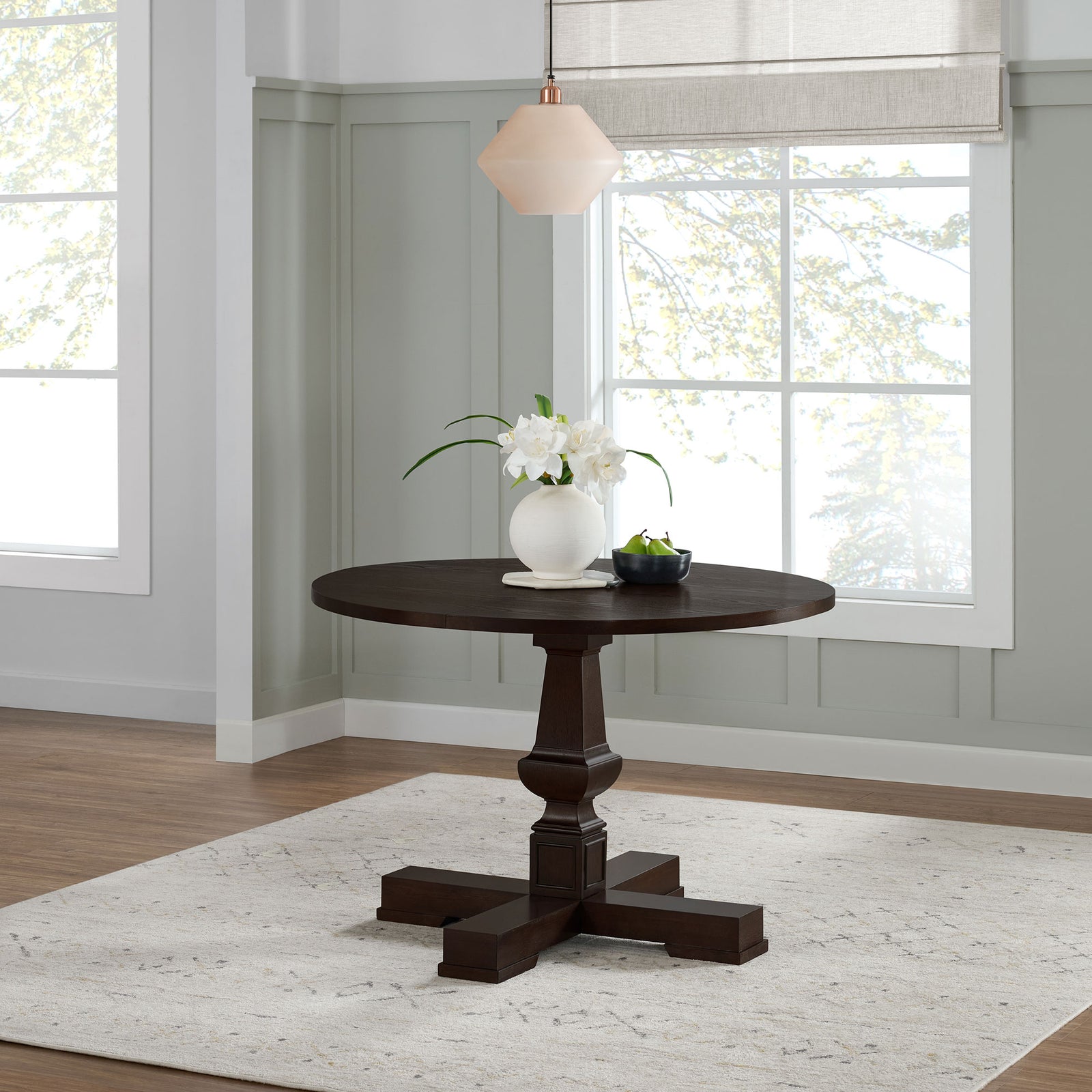 ROME + OAK Rumson 44" Modern Farmhouse Pedestal Dining Table, Dark Brown