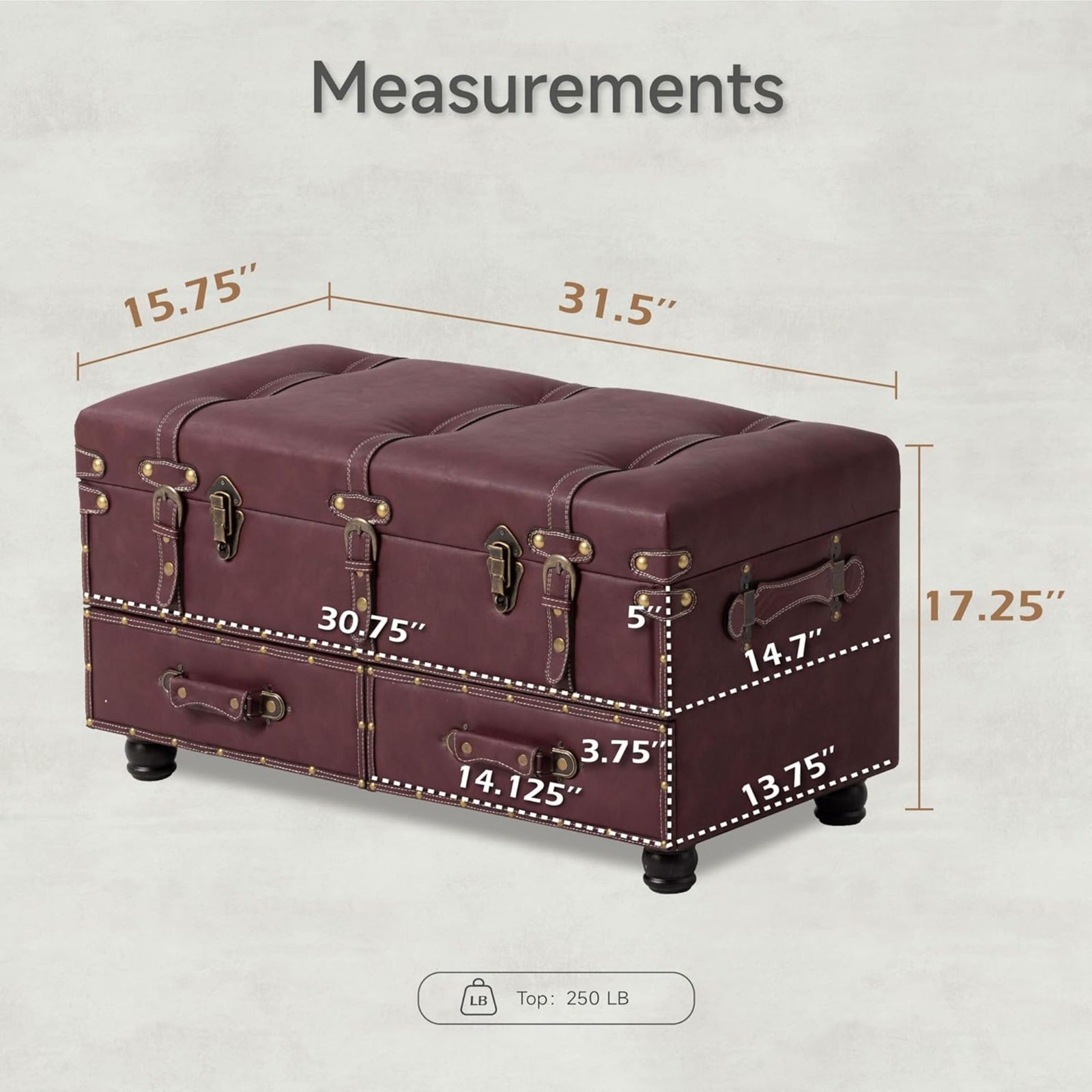 COZAYH Vintage Storage Bench, Upholstered Wooden Ottoman Bed Chest Box, Magenta