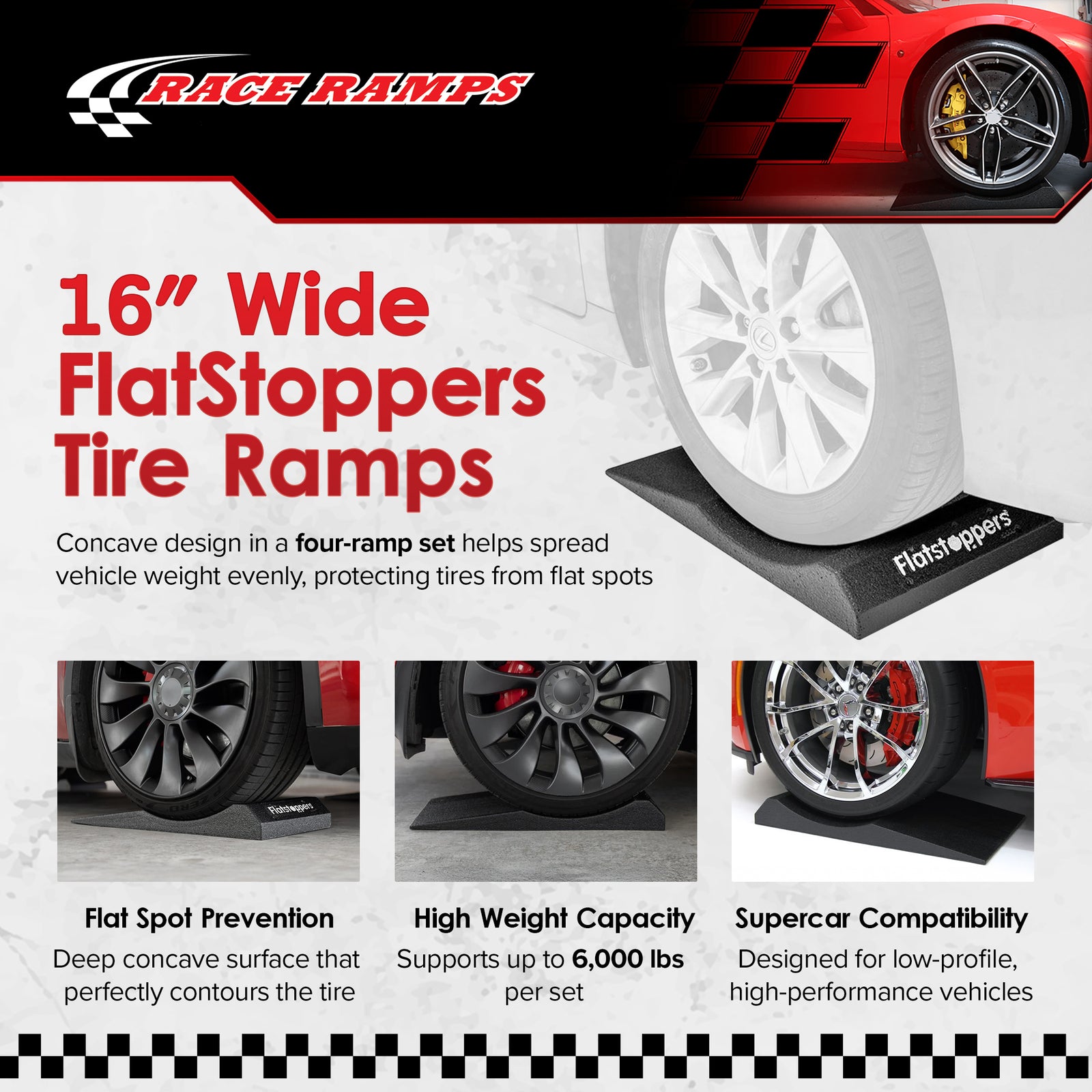 Race Ramps FlatStoppers, Tire Car Ramps for Storage, 16" Wide, 4pc (Open Box)
