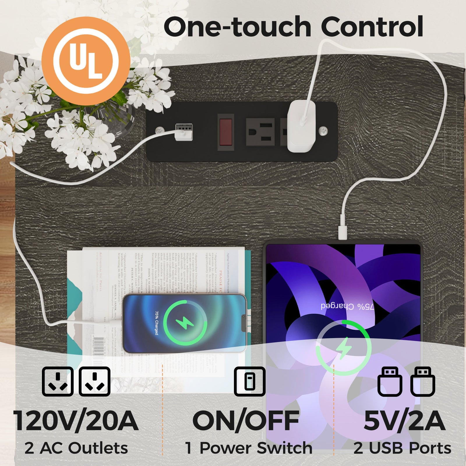 RoyalCraft Farmhouse Nightstand, Bedroom Table with Charging Station (Open Box)