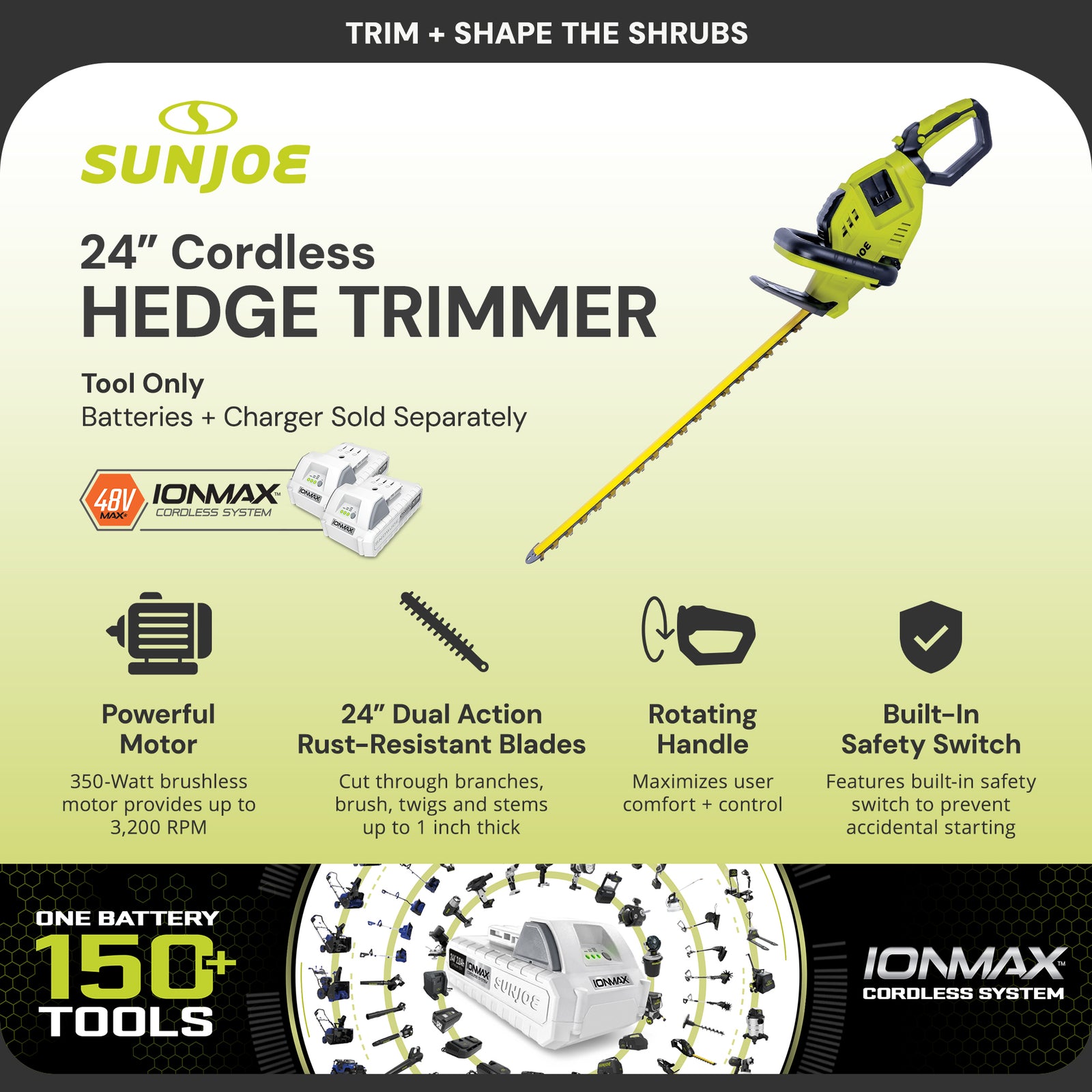 Sun Joe Cordless Hedge Trimmer Tool. 24" Portable Tree Trimmer, 24V-X2-24HT-CT
