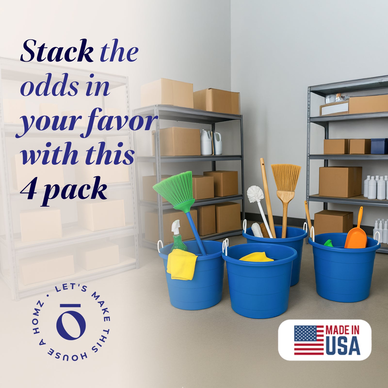 Homz 18 Gal Plastic Open Storage Round Utility Tub with Handles, Blue (4 Pack)