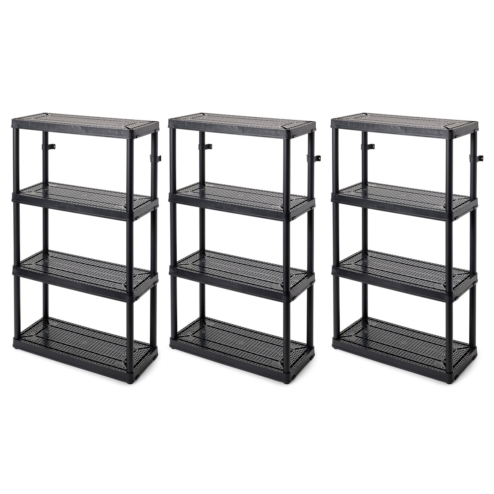 Gracious Living 4 Shelf Fixed Height Medium Duty Storage Unit, Black (3 Pack)