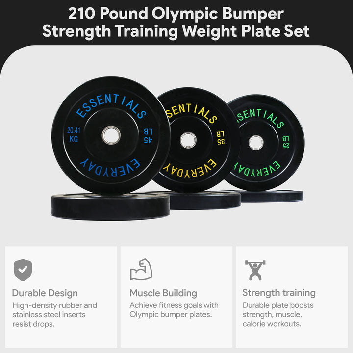 BalanceFrom Fitness 210 Pound Olympic Bumper Strength Training Weight Plate Set