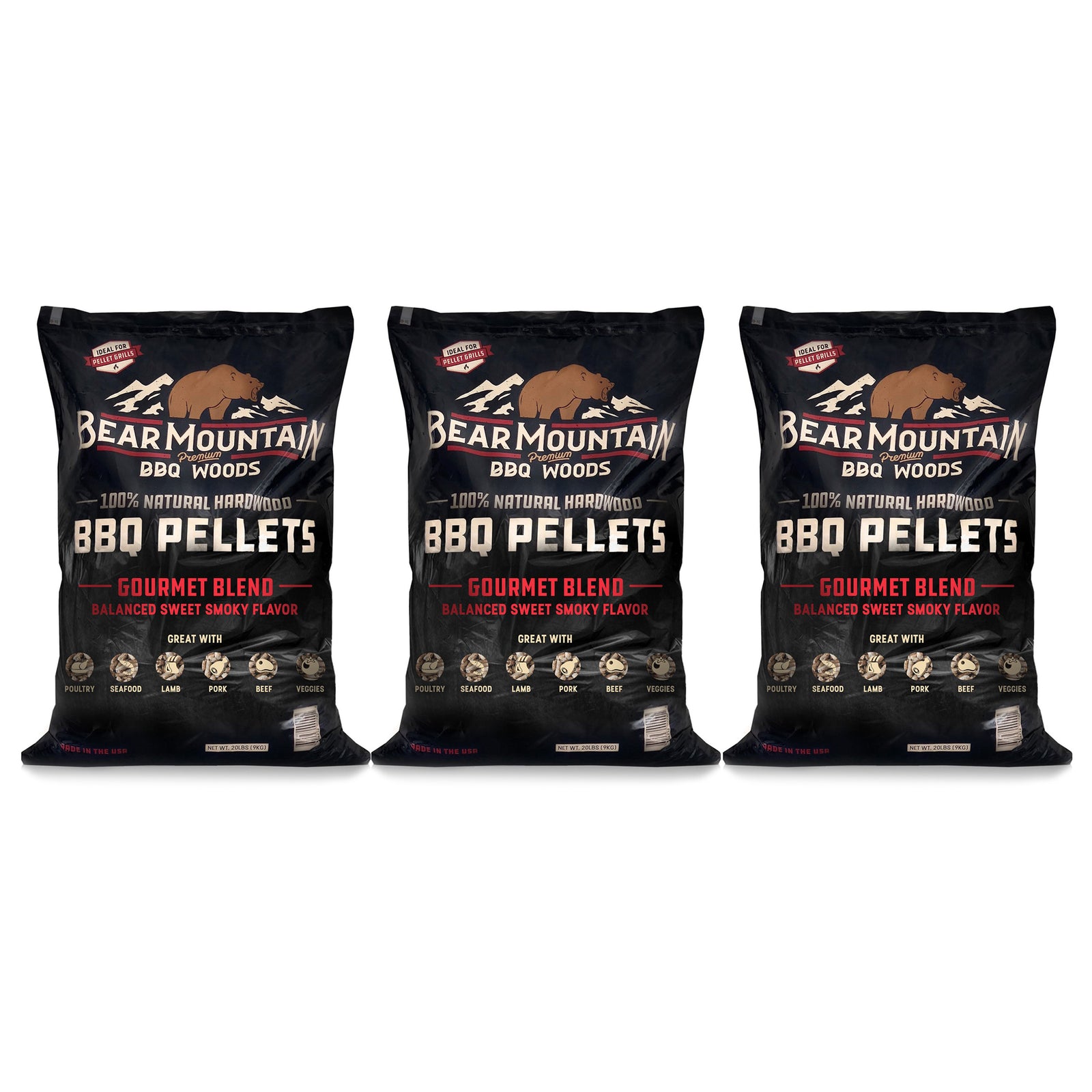 Bear Mountain BBQ Natural Hardwood Gourmet Blend Smoker Pellets, 20 lbs (3 Pack)