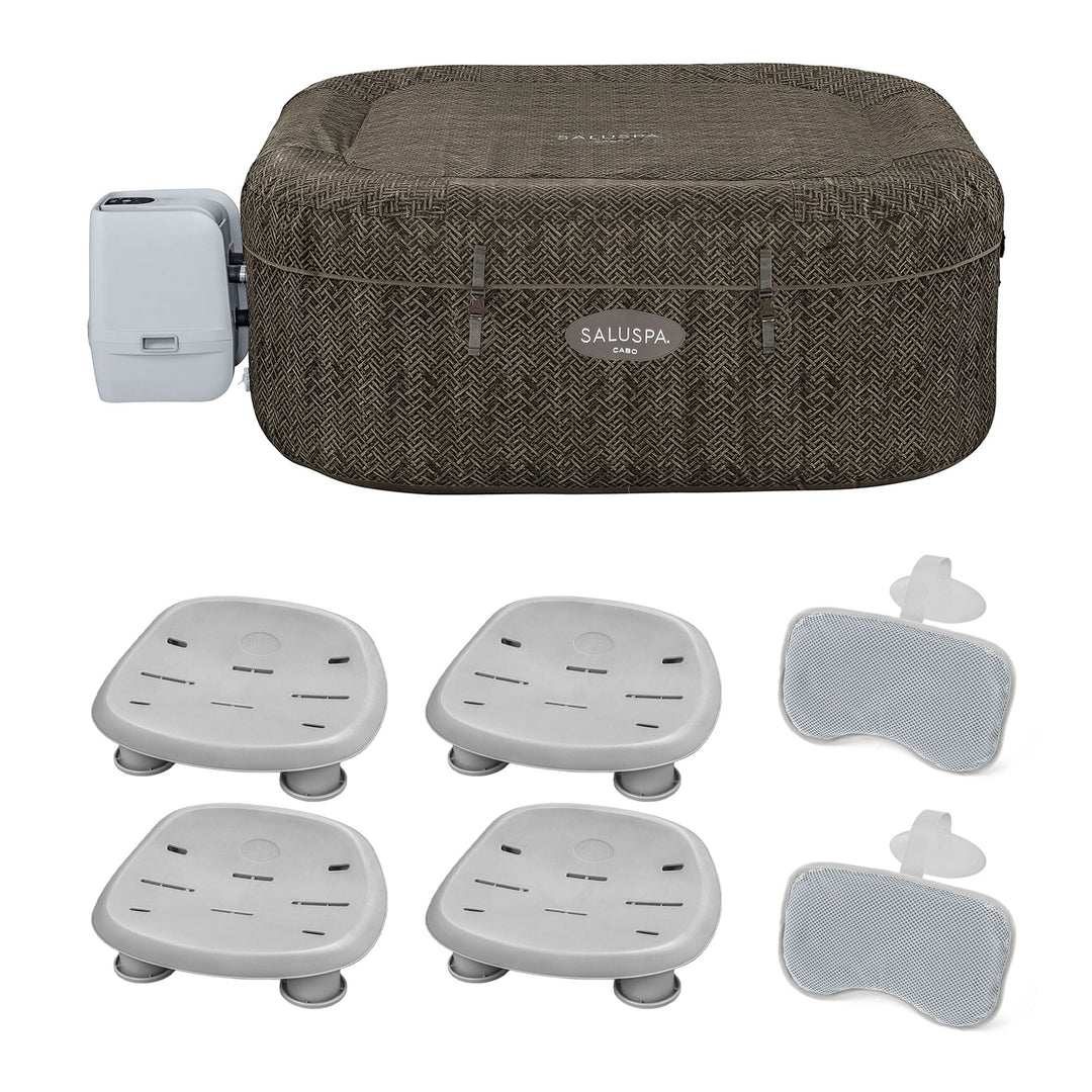 Bestway SaluSpa AirJet Inflatable Square Hot Tub w/4 Seat & 2 Headrest Pillow