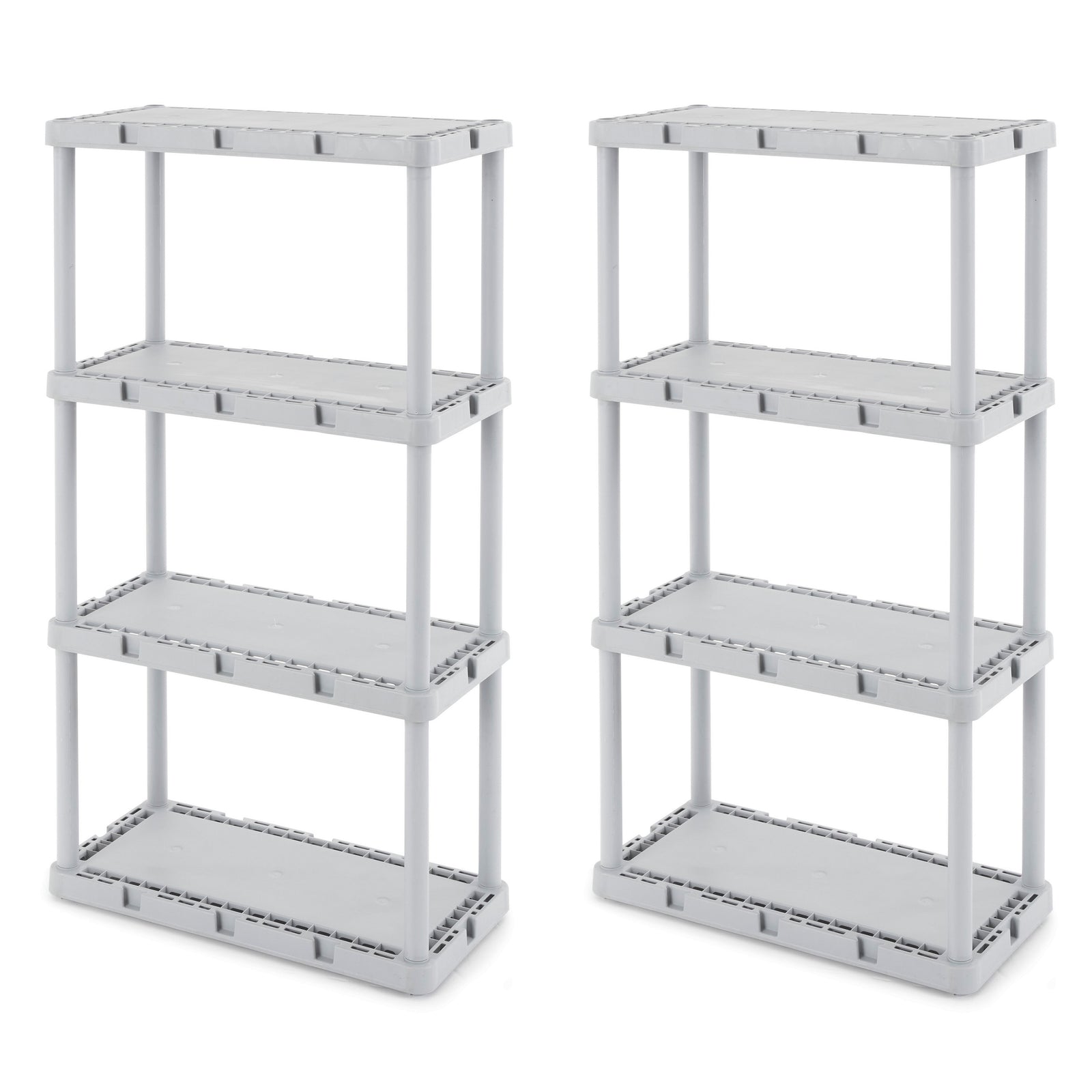 For whatever your organizational needs, the 2-pack of the Gracious Living Knect-A-Shelf Fixed Height 4 Shelf Storage System will help you clean up the clutter.