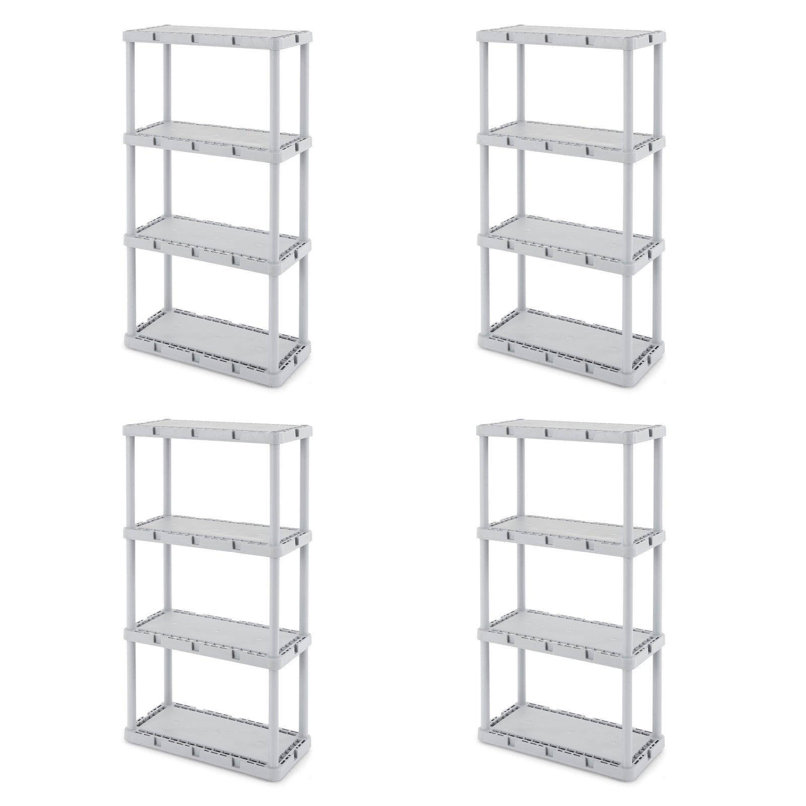 For whatever your organizational needs, the 4-pack of the Gracious Living Knect-A-Shelf Fixed Height 4 Shelf Storage System will help you clean up the clutter.