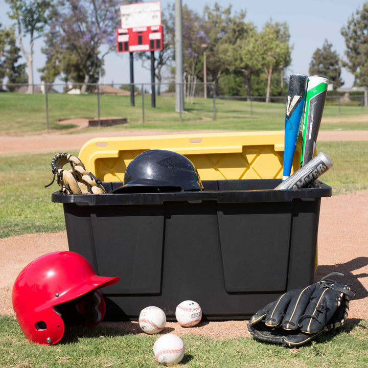 - Declutter your space and store anything from clothes to tools to hunting equipment with this ultra-durable 27-gallon plastic tote