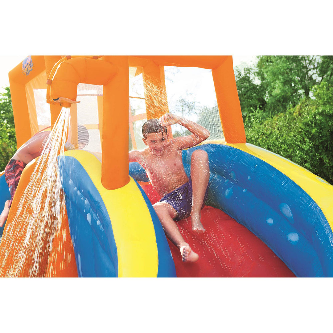 Grab a towel and get ready to enter your very own backyard water park with the Bestway H2OGO! Hurricane Tunnel Blast Inflatable Water Park. You'll wonder why you ever paid admission to one of those other parks again when your kids are able to splash around anytime they like in this durable, multicolored PVC inflatable.