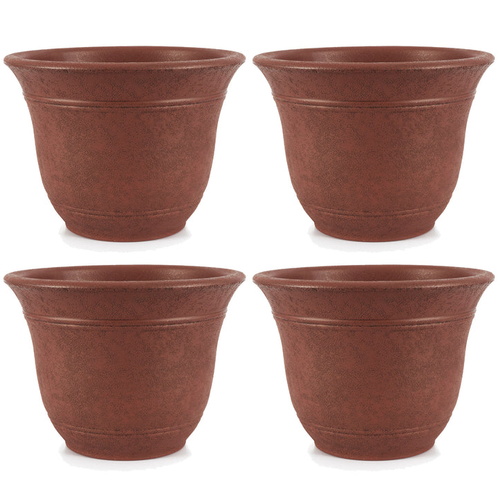 HC Companies Sierra 13 In Round Garden Planter Pot, Rustic Redstone (4 Pack)