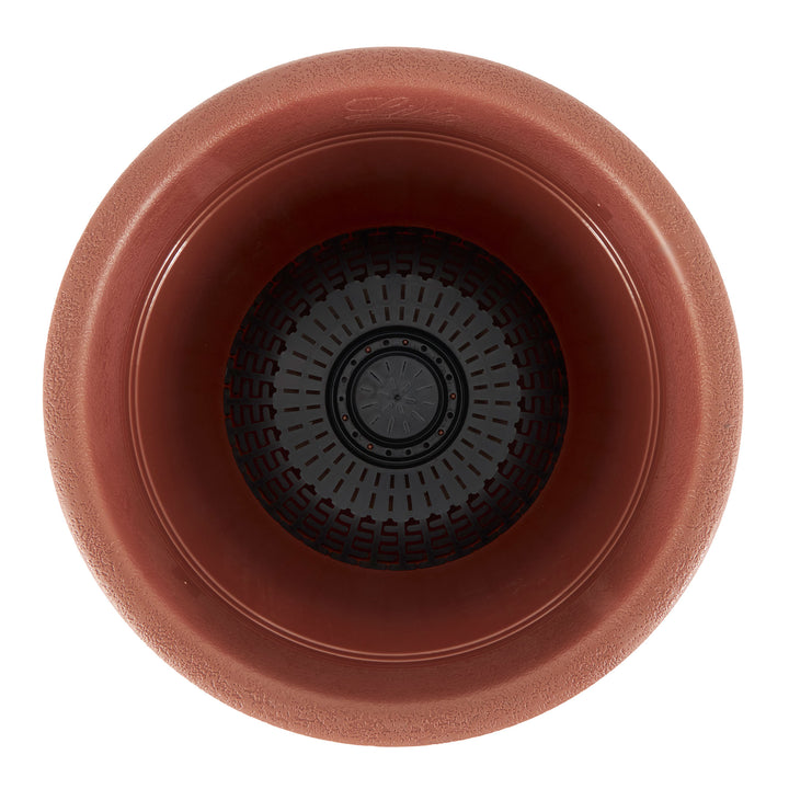 Whether nurturing vibrant blooms, fresh herbs, or lush foliage, this versatile planter pot is your go-to companion for elevating indoor or outdoor decor. Crafted with convenience in mind, this portable plastic planter boasts a spacious 13-inch diameter across the top. It stands at a height of 9.60 inches, providing ample room for your favorite botanical treasures to thrive. From sun-drenched patios to cozy balconies, this pot seamlessly integrates into any outdoor setting, adding a natural charm to your surroundings. Bid farewell to the hassle of daily watering routines with the internal self-watering disk, a game-changer in plant care technology. Say goodbye to messy spills and waterlogged roots, as this innovative feature ensures your plants receive the optimal amount of hydration without the risk of overwatering or underwatering. Enjoy peace of mind knowing that your precious greens thrive in a nurturing environment.