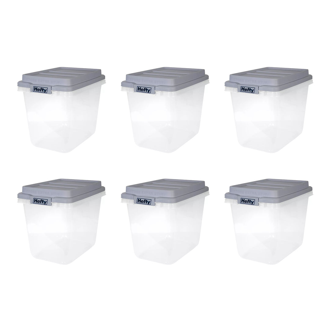 Hefty 6 Pack 32 Quart Hi-Rise Stackable Plastic Storage Bin w/ Lid, Quarry Gray