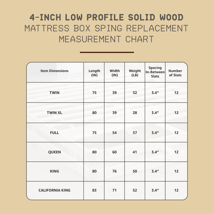 - Height is ideal for those who prefer a minimalist aesthetic while maintaining a sturdy mattress foundation and wood box spring