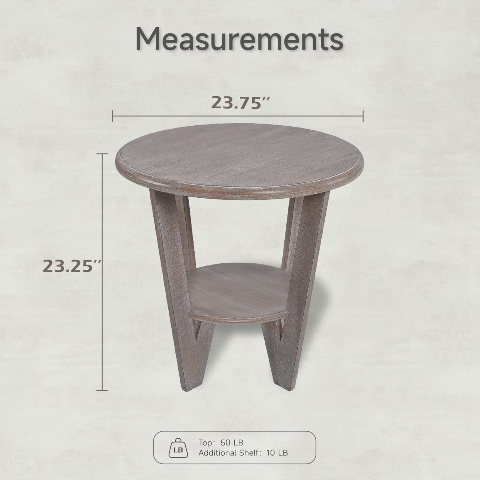 COZAYH Rustic Farmhouse Round End Table with Storage Shelf for Living Room, Grey