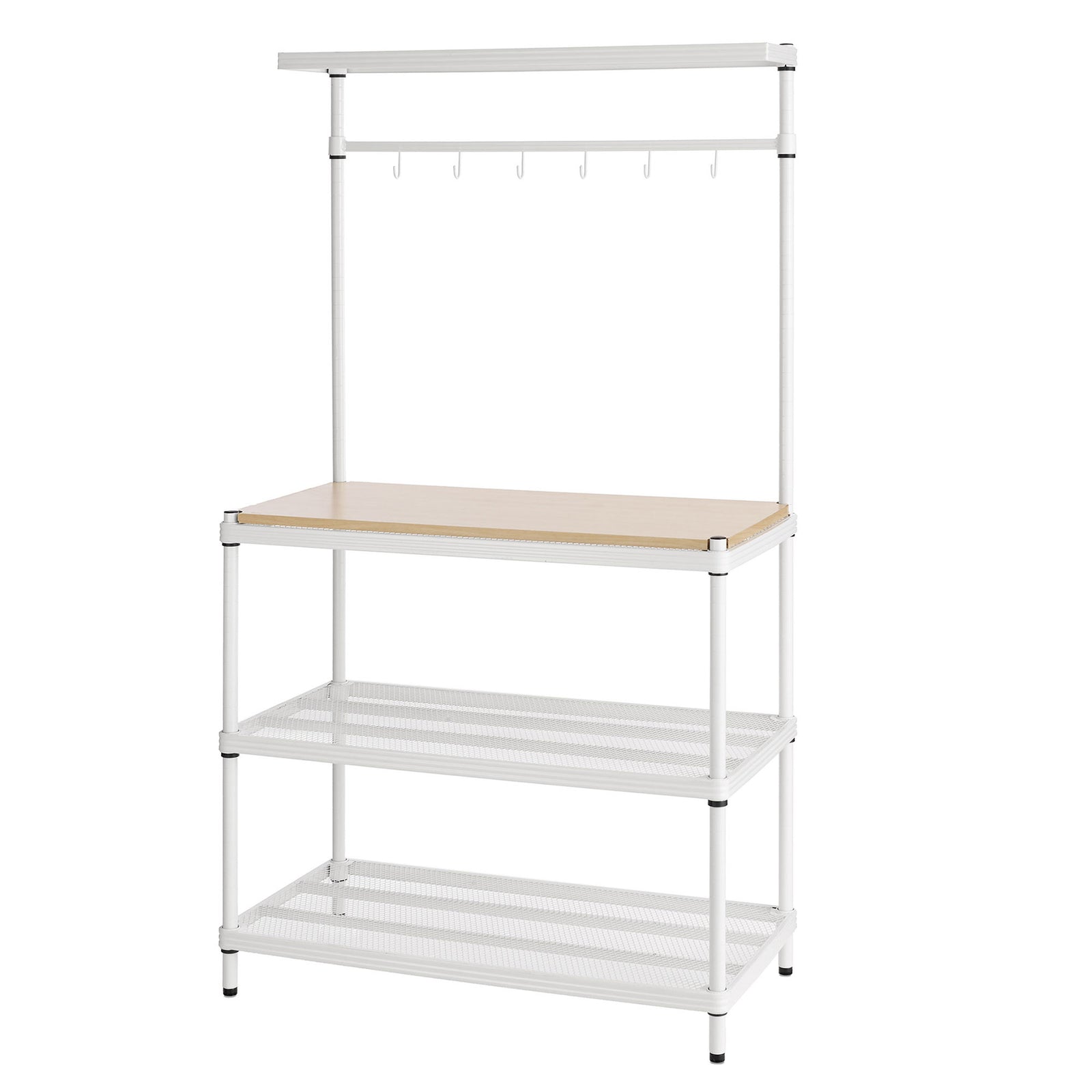 Design Ideas MeshWorks Metal Storage Wood Top Workbench Shelving Unit, White
