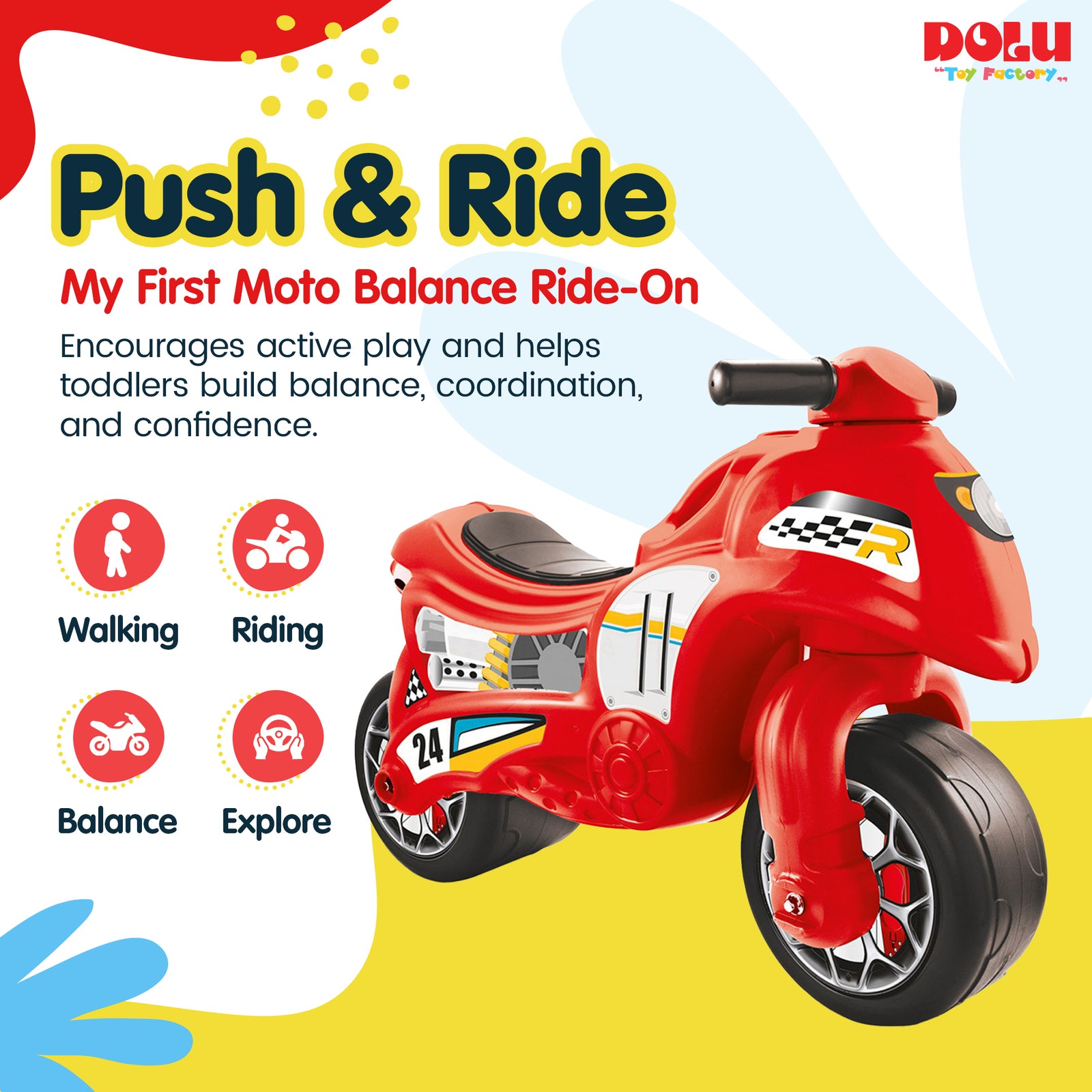 DOLU My First Moto Balance Ride-On, Foot-Powered Balancing Toddler Toy, Red