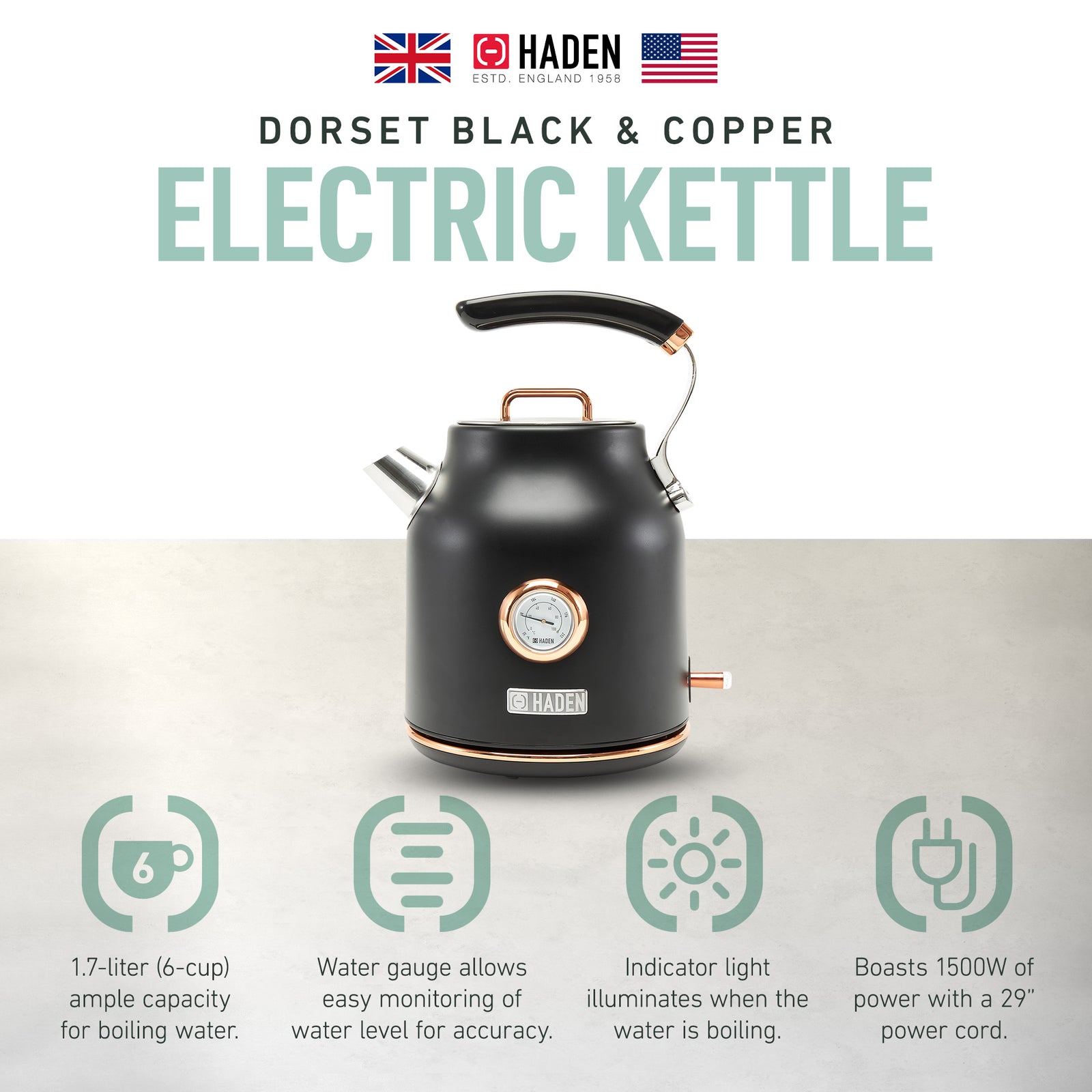 Dorset 1.7L Stainless Steel Electric Kettle w/ Auto Shut Off, Black/Copper(Used)