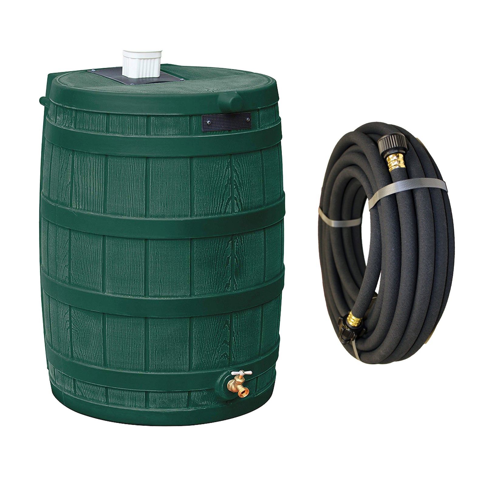 Good Ideas Rain Wizard 50 Gallon Plastic Rain Barrel, Green with 50' Soaker Hose