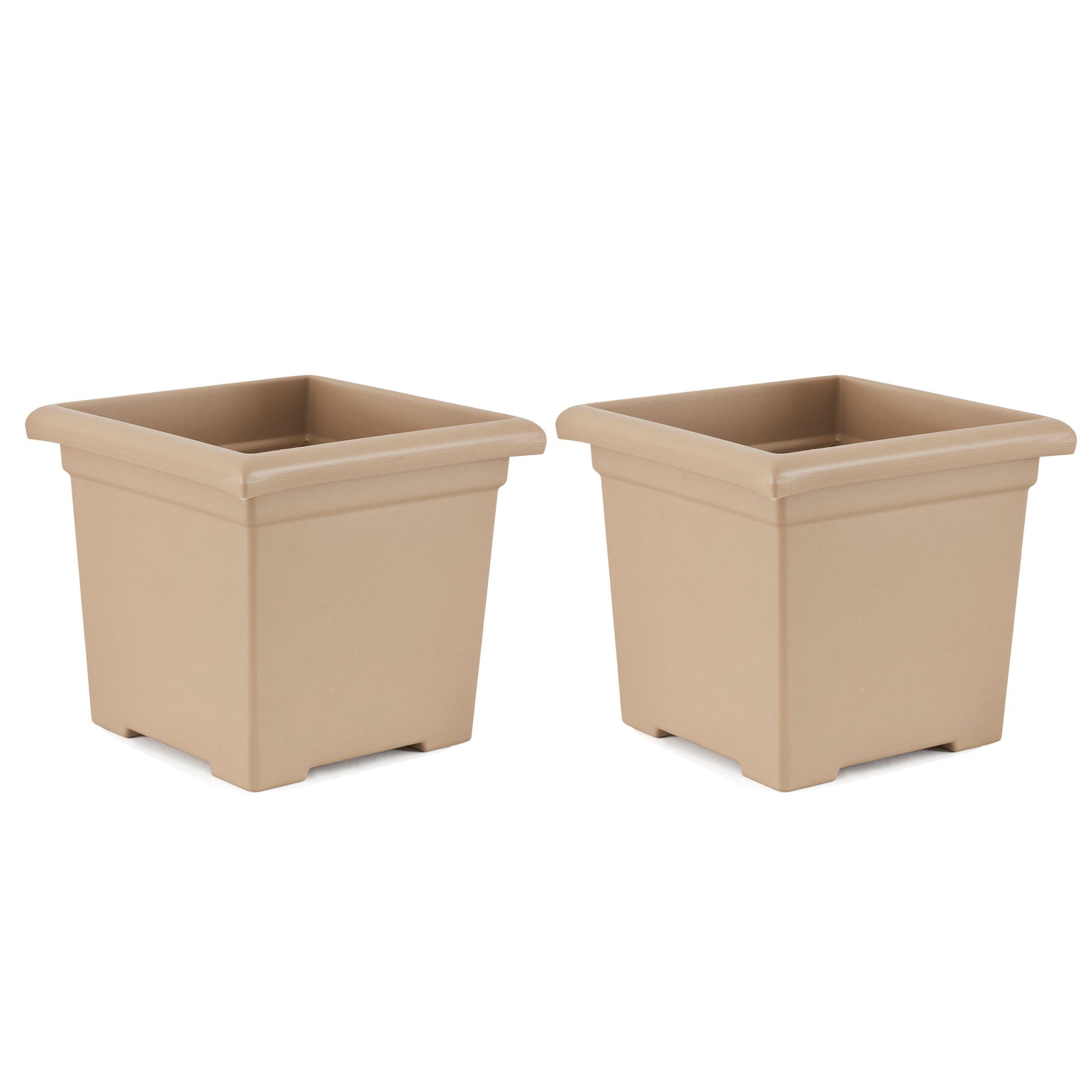 HC Companies 13.25"Dx15.5"W Outdoor Square Accent Planter, Sandstone Tan (2 Pk)
