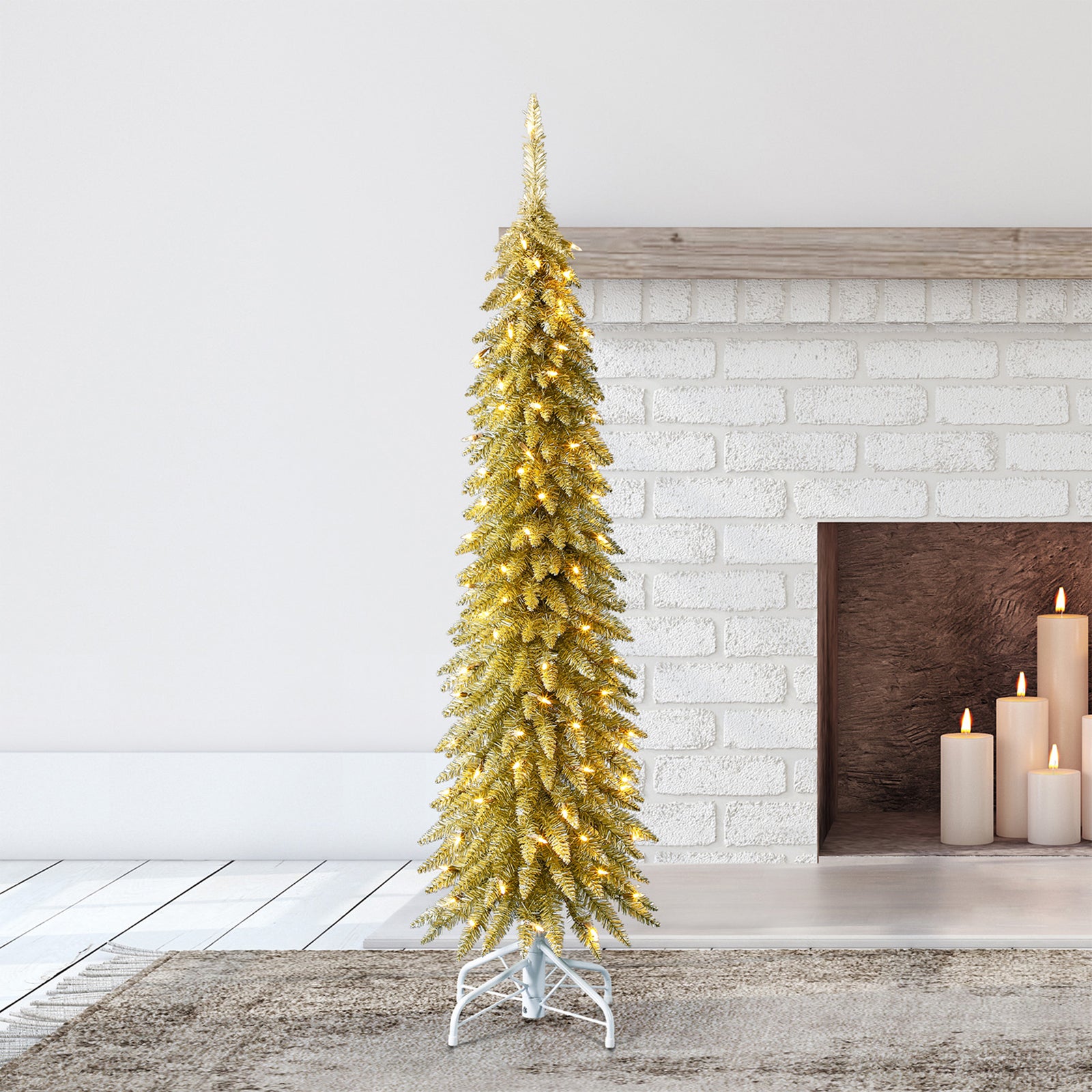 Home Heritage 7 Foot Pencil Artificial Tree with White LED Lights, Silver (Used)