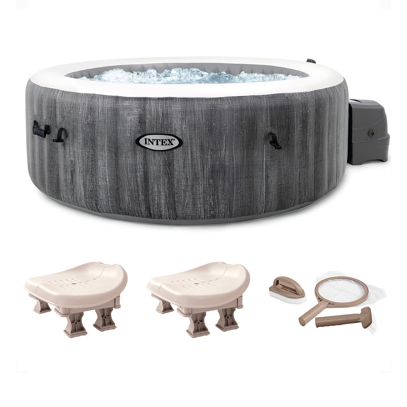 Intex PureSpa Plus Greywood Inflatable Hot Tub Jet Spa w/ Accessories Benches