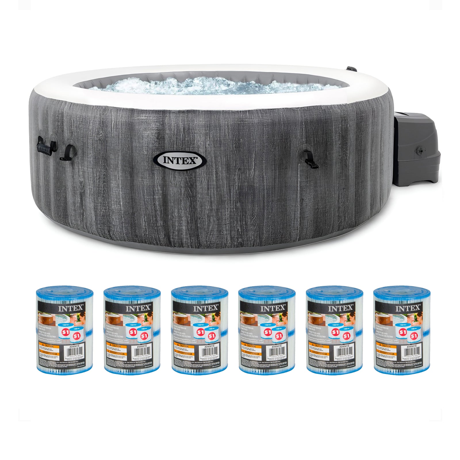 Intex PureSpa Plus Inflatable Bubble Jet Hot Tub & Replacement Filters (6 Pack)