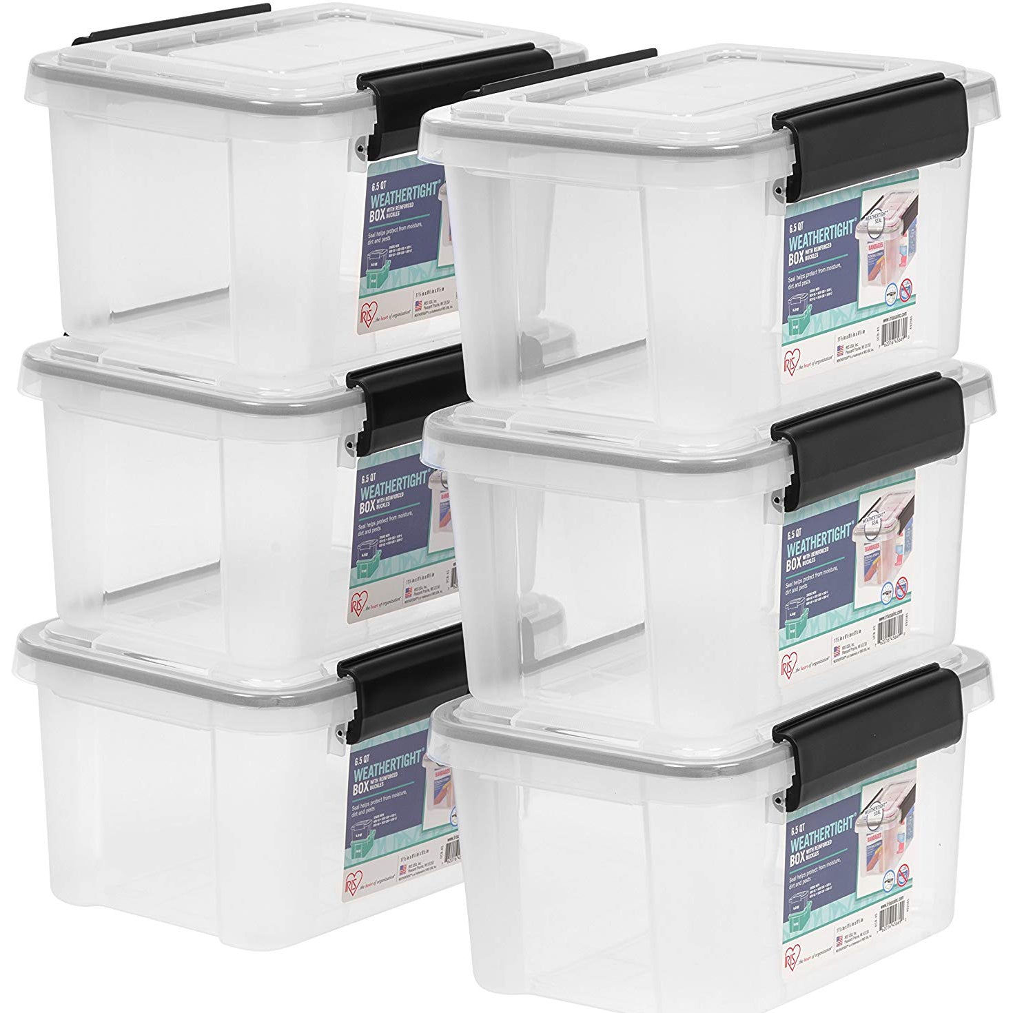 IRIS USA 6.5-Quart Stackable Plastic Clear Storage Box, 6 Pack (Open Box)