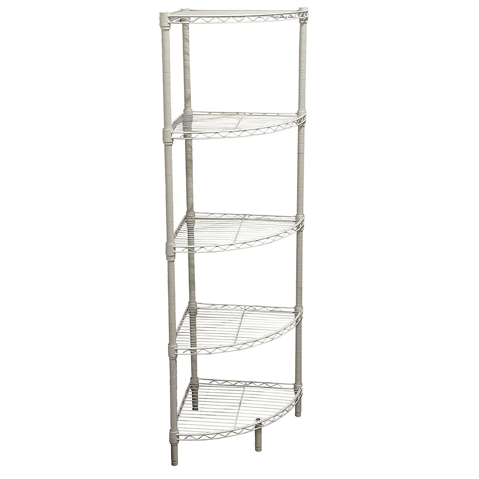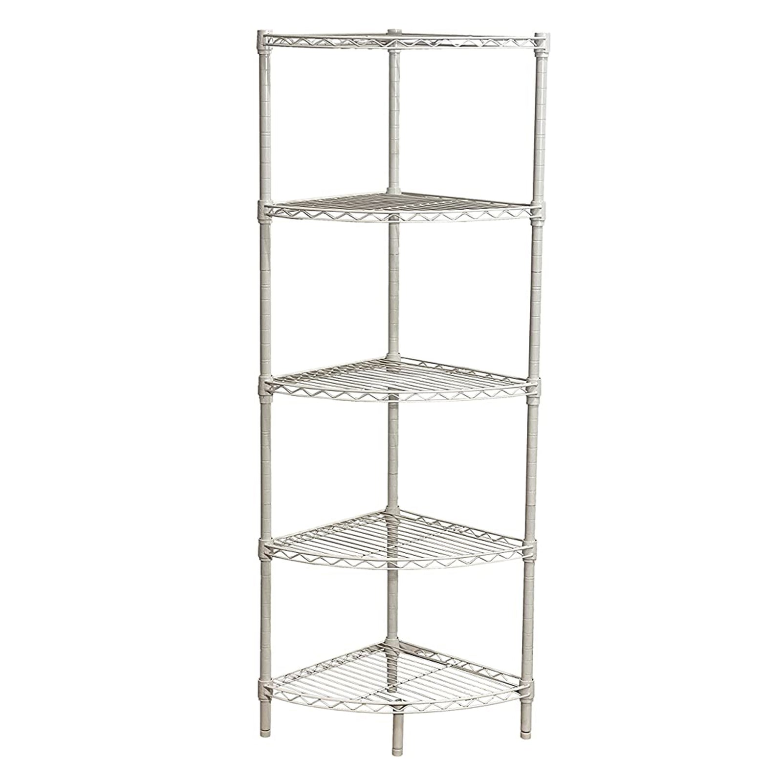Juggernaut Storage Steel Wire 5-Tier Corner Home Shelving Unit Tower, White