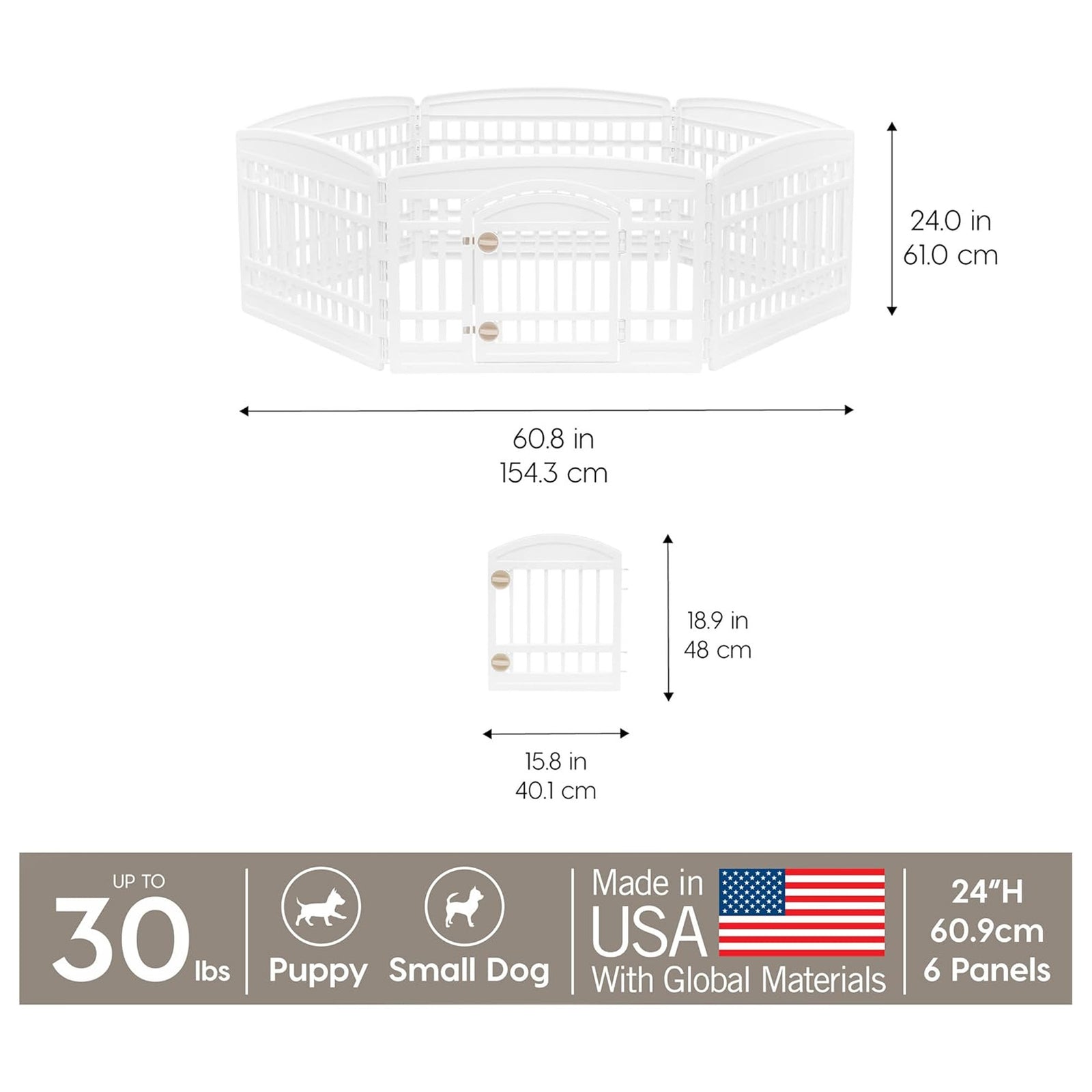 IRIS USA 24 Inch 6-Panel Dog Playpen with Door, Indoor Pet Puppy Fence, White