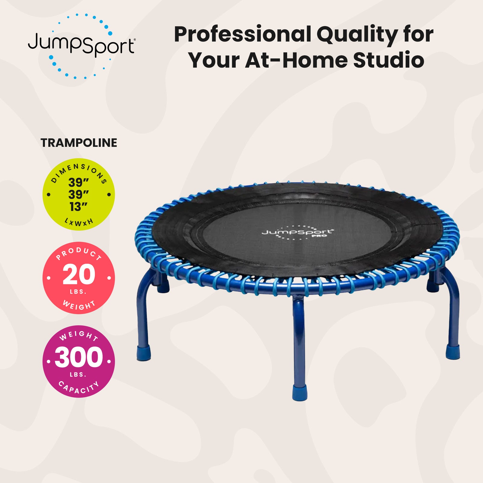 JumpSport 350 PRO Fitness Trampoline, Cardio Workout Equipment, 39 Inch, Inspire