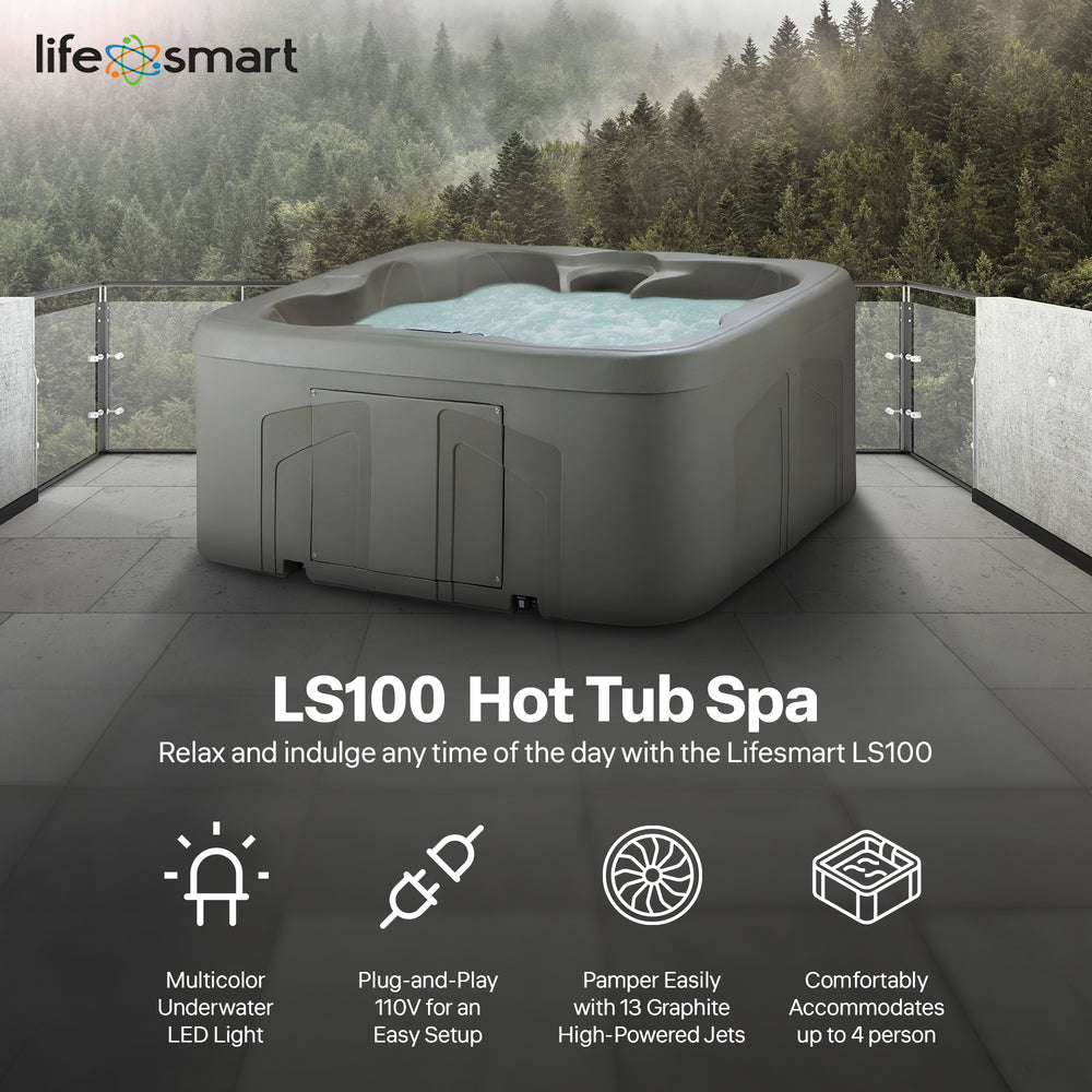 LifeSmart LS100 Taupe 4 Person Plug & Play Square Spa with Black Cover(Open Box)