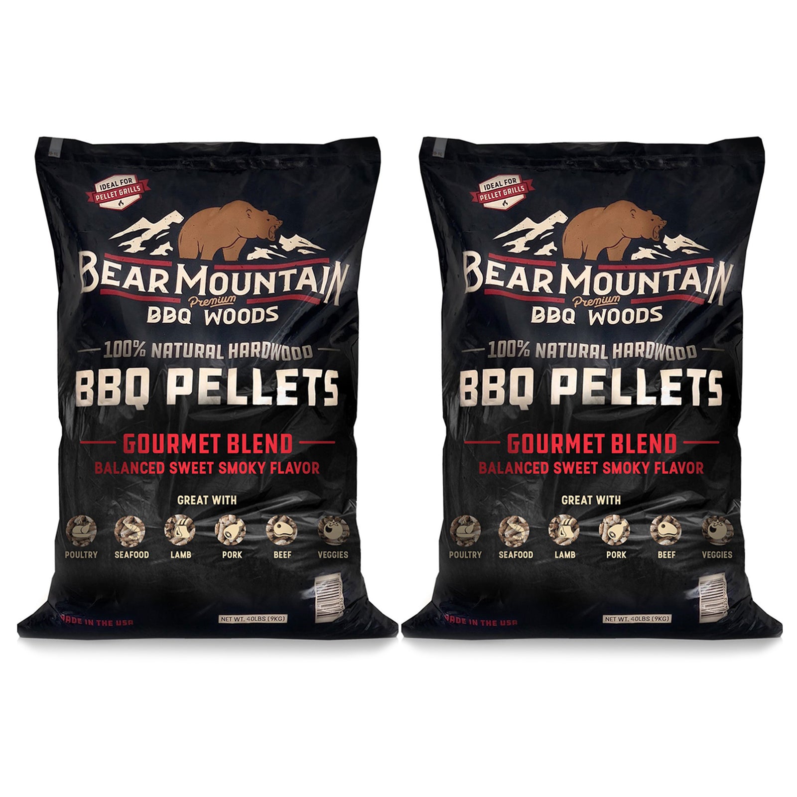 Bear Mountain BBQ All-Natural Hardwood Gourmet Smoker Pellets, 40 lbs (2 Pack)