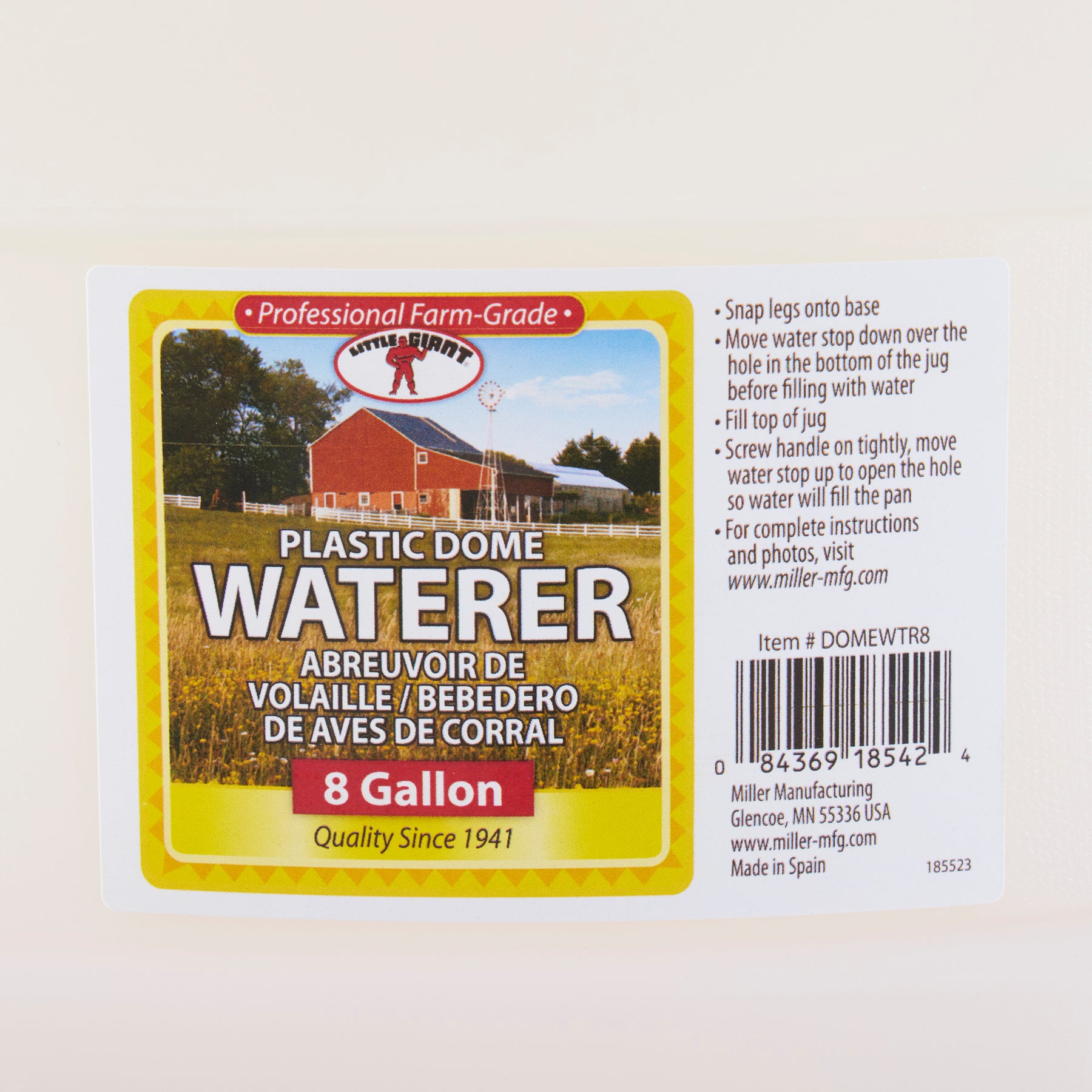 The built-in Water Saver Ring minimizes spillage to prevent wasted water and is easily removed for cleaning. Made of strong, heavy-duty plastic, this chicken waterer is designed to withstand heat, cold, and cracks over time for long-term, low-maintenance use. You can also easily assemble and disassemble this poultry waterer with its 3-leg design that keeps the waterer off the ground. This water tank is easy to fill thanks to the top-fill design and lid. Fill from the top and screw the lid on tightly.