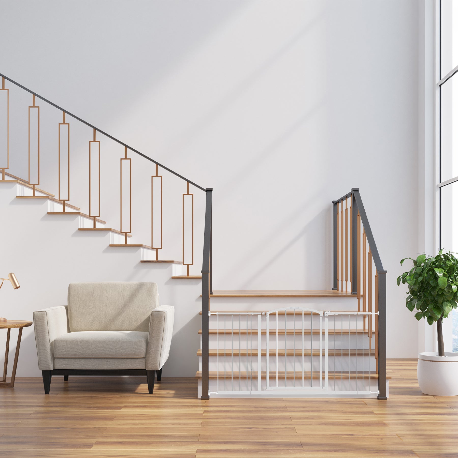 - Finished in a sleek white hue, this dog gate seamlessly integrates into any decor, preserving your home's style without compromise