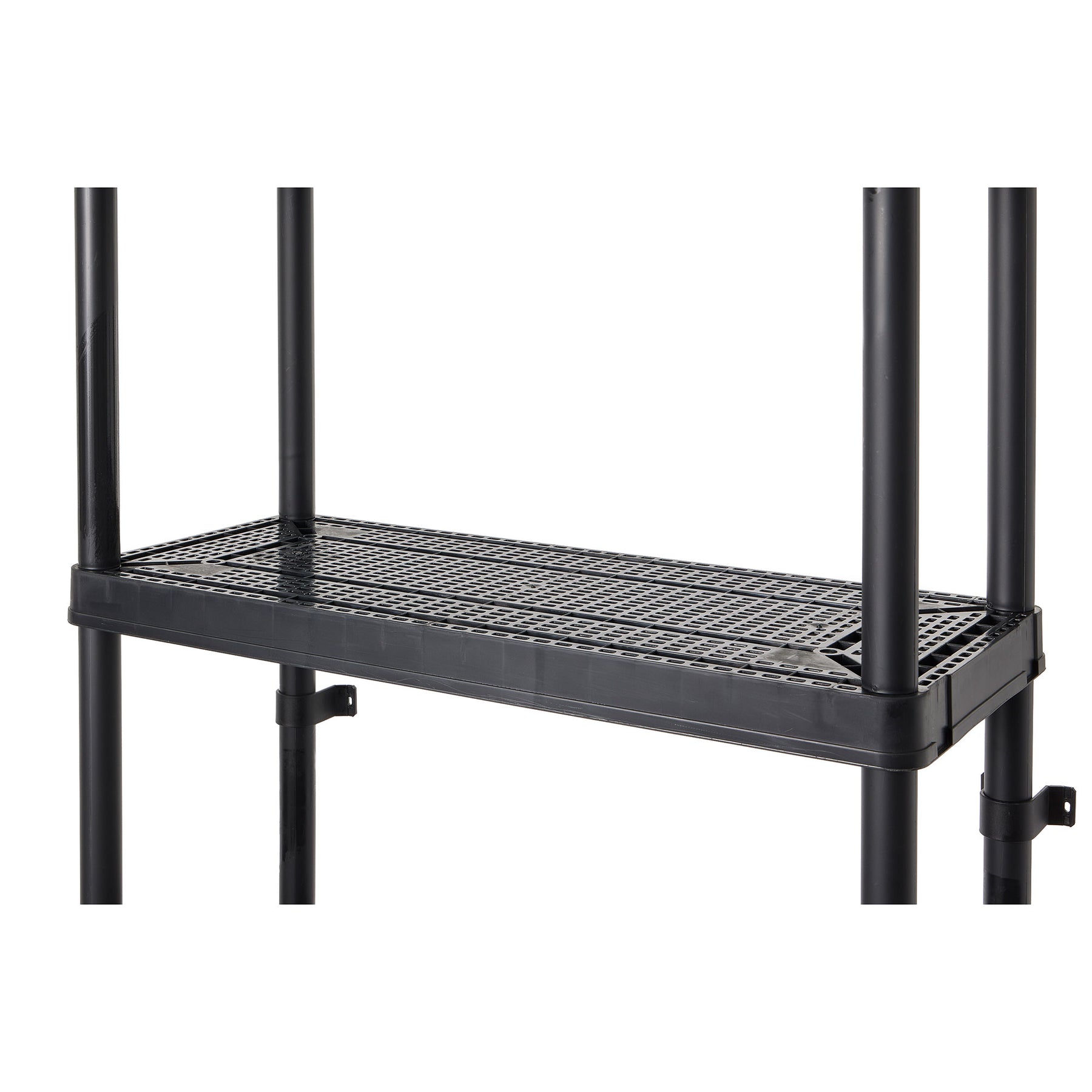 - Constructed from durable plastic, this utility rack resists rusting, denting, and peeling