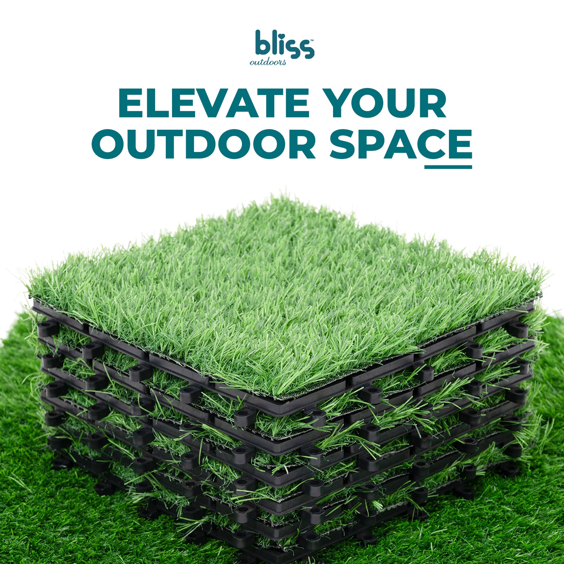 Bliss Outdoors 12"x12" Artificial PP Grass Interlocking Tiles, Green, Set of 30
