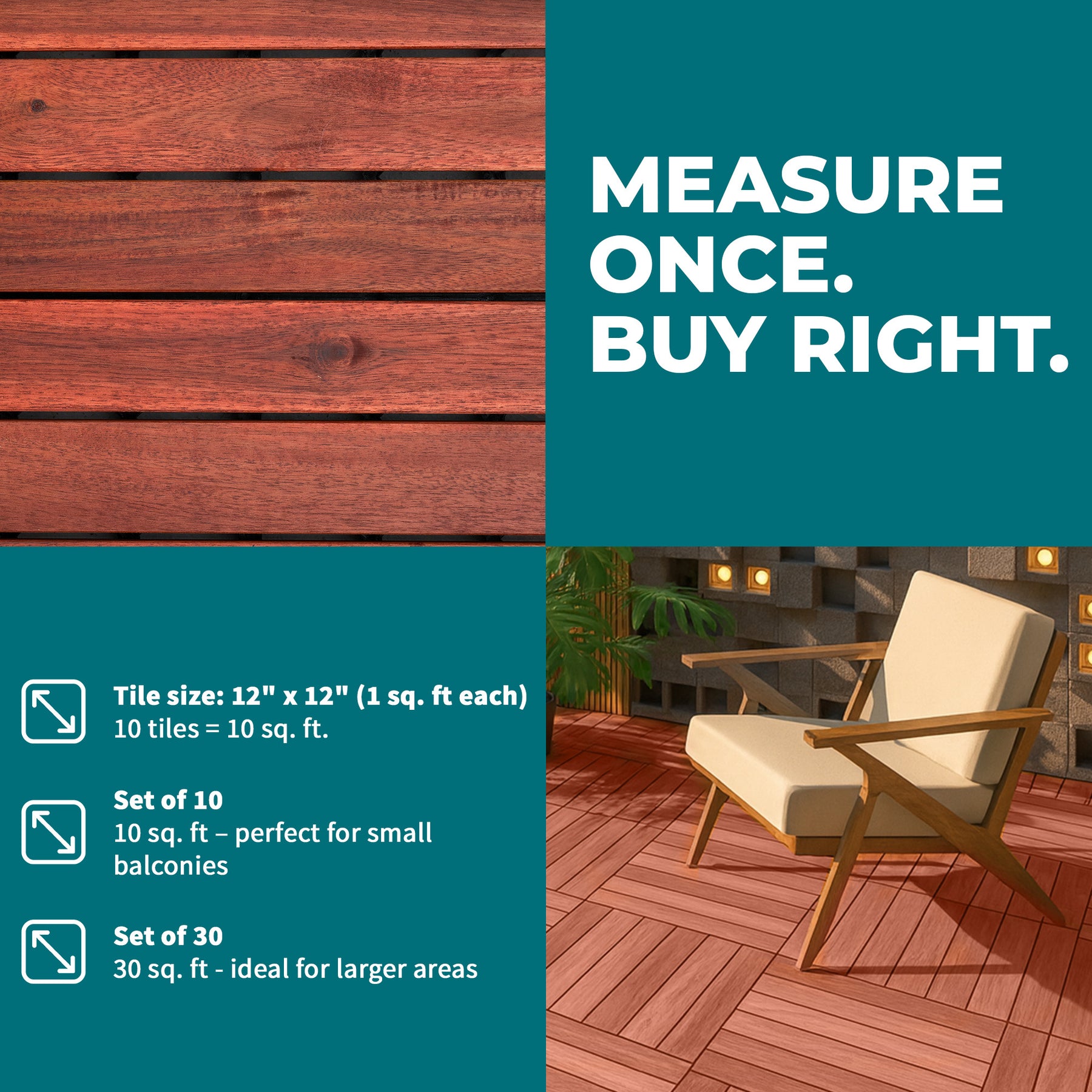 Bliss Outdoors Hardwood 6-Slat Interlocking Wood Deck Tiles, Red, Set of 10