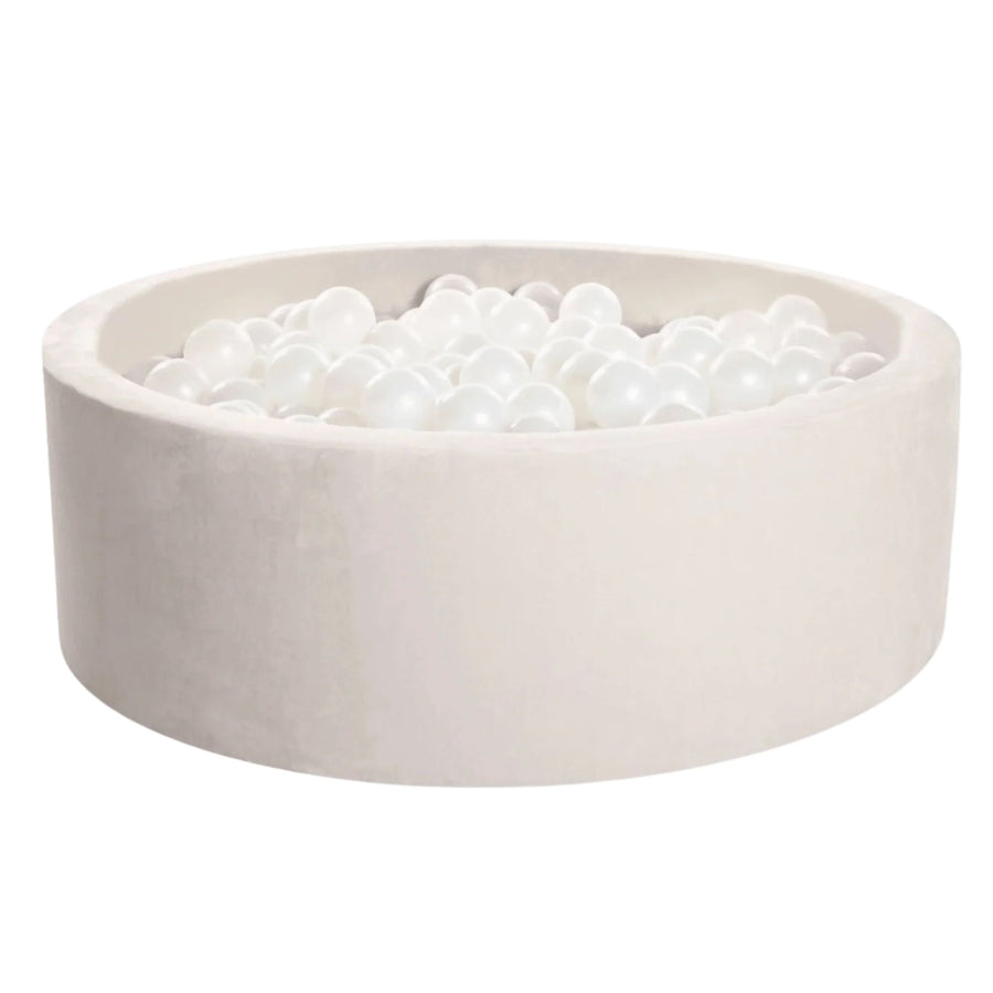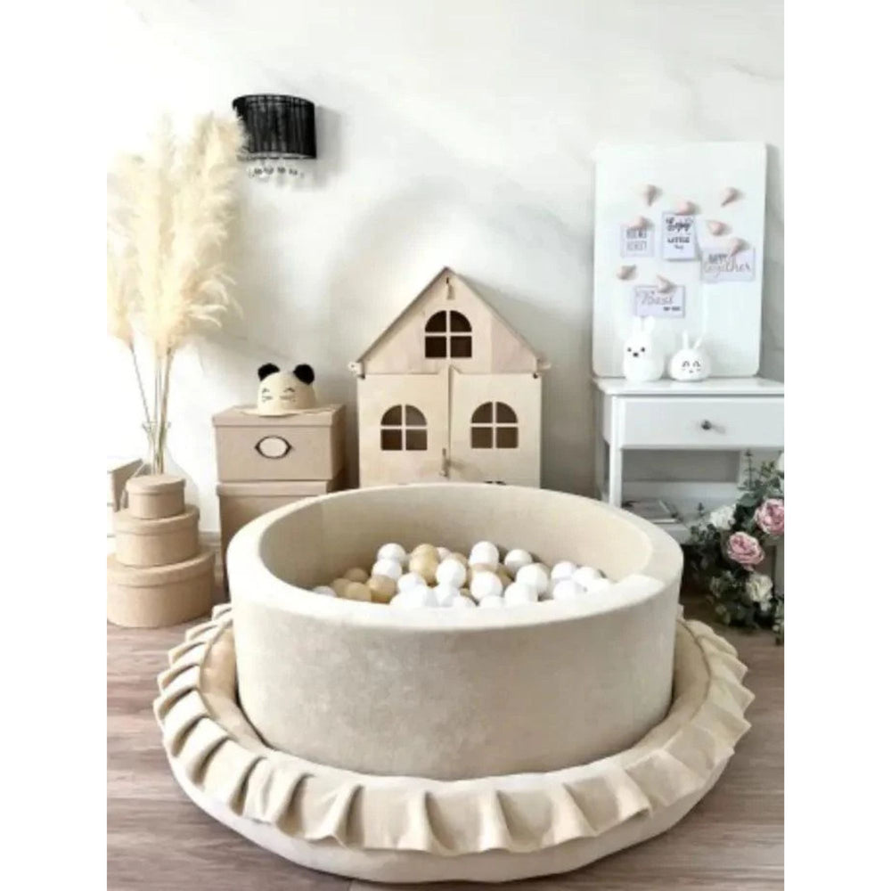 KIDKII Round Ball Pit Soft Velvet Indoor Play Toy for Toddlers, 150 Balls, Beige