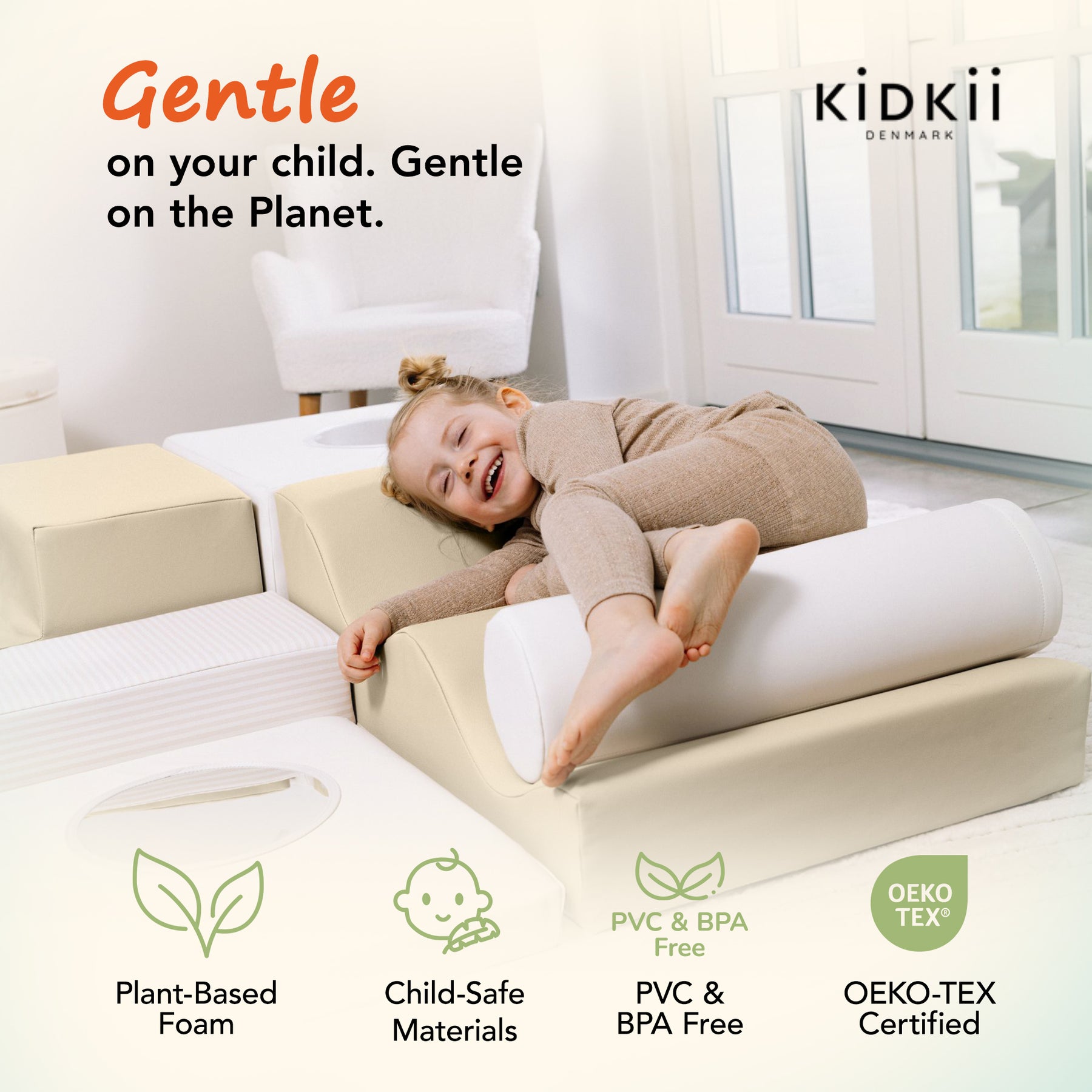 KIDKII 6 Piece Mirror Soft Play Foam Climbing Sensory Blocks Toddler Toy, Beige