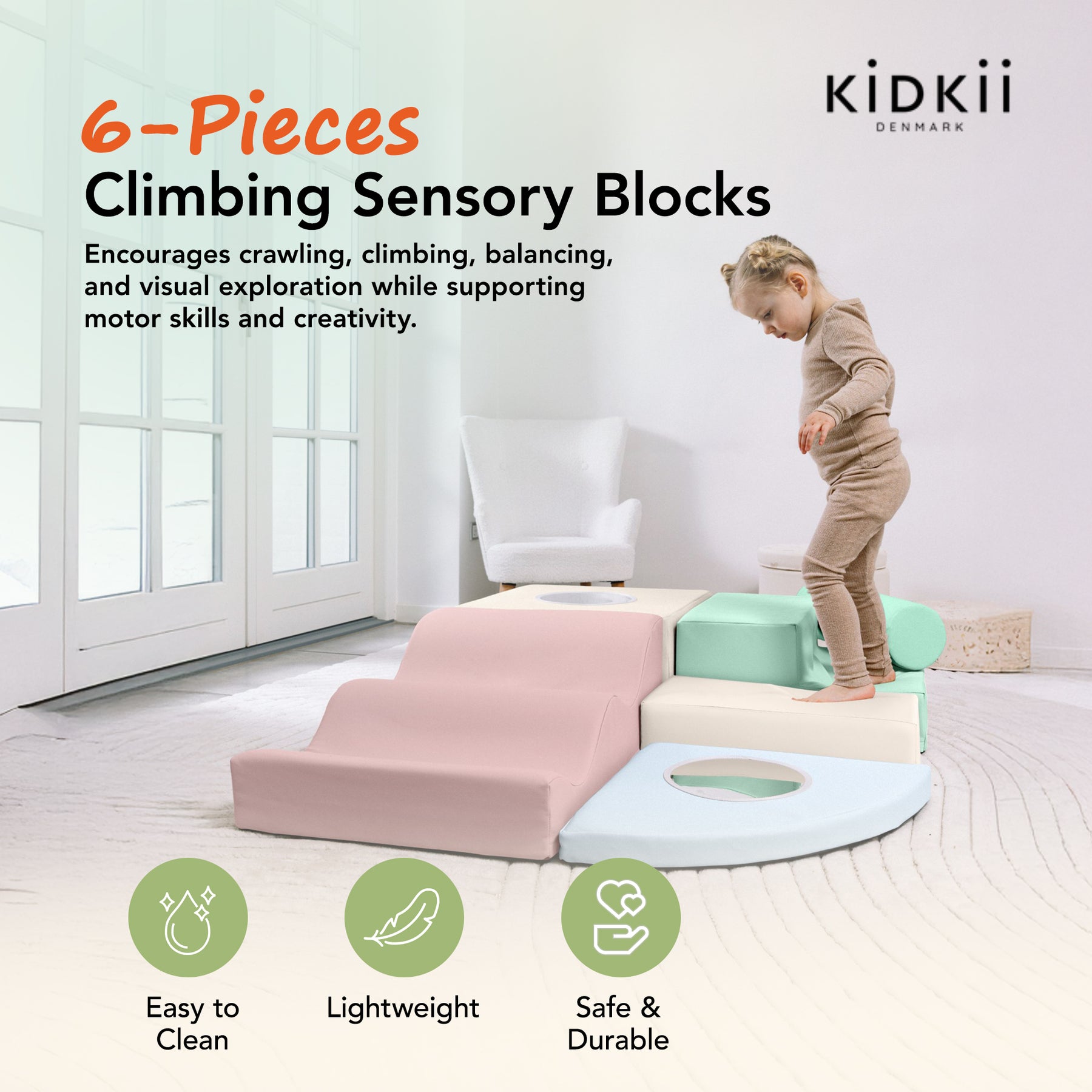 KIDKII 6 Piece Mirror Soft Play Foam Climbing Sensory Blocks Toddler Toy, Pastel