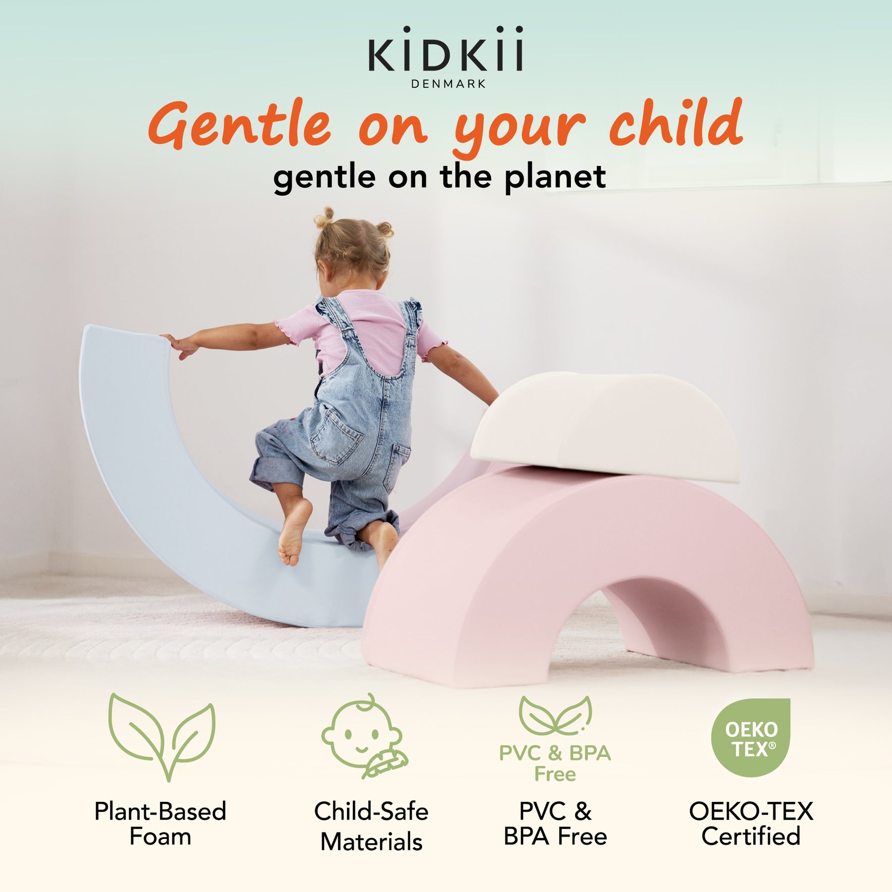 The 3-piece set transforms effortlessly from a decorative rainbow to interactive climbing arches, tunnels, and seesaws. Children can arrange and rearrange the pieces to suit their playtime adventures, whether they want to crawl through, climb over, or simply lounge on its soft surface. Its versatility ensures that no 2 play sessions are the same, sparking creativity and encouraging independent discovery.