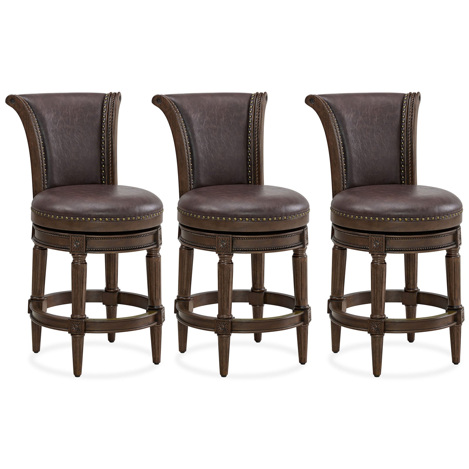 ROME + OAK Runyan Counter Stool, Dark Walnut, Vintage Brown Vegan Leather, Set of 3