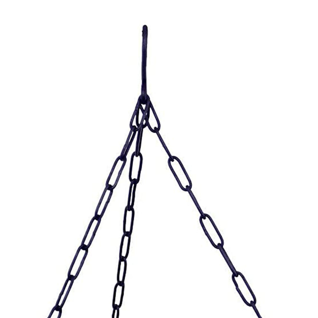 • Simple wrought iron hanging ring has 3 chains connected by a top hanging hook with a rail mount bracket; Easy to assemble