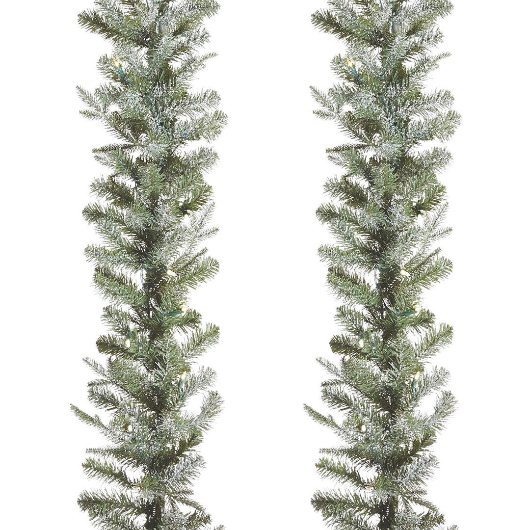 • Enhance the look of your holiday decorations with this set of 2 realistic and pre-lit Christmas garland strands that recreate a snowy winter forest with lifelike foliage and frosted tips to bring the essence of the season into your home