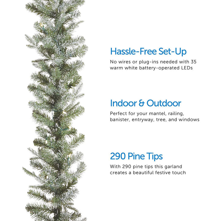 • Each garland strand measures 9 feet long and 290 PE and PVC glitter flocked frosted fir needles for a full look